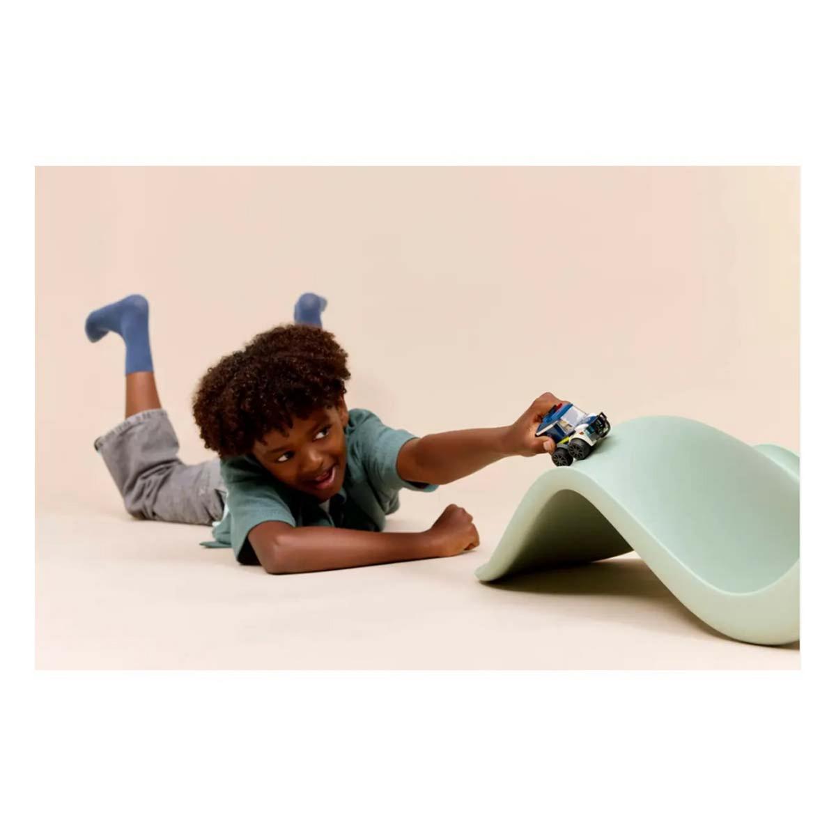 Unleash action-packed police adventures with the LEGO® City Rides – Police Truck (60481) mini building kit for kids aged 5 and up. This compact, buildable toy police truck with cool rims, low-profile rubber tires, a push bumper, prison bars and toy emergency lights offers young builders a fun way to explore the world of LEGO City. The set also includes a LEGO City Rides police officer junior minifigure that fits perfectly in the driver’s cab for hours of pretend play. Part of the LEGO City Rides collection, this easy-to-build police truck toy is perfect for young children and makes a great anytime surprise or birthday gift for boys, girls and kids who love toy cars and imaginative play. Add it to other LEGO City sets (sold separately) for more adventures. With this LEGO City Rides – Police Truck playset, kids can enjoy intuitive building with the LEGO Builder app, zooming and rotating with 3D instructions, while saving and tracking progress – all from the app. Set contains 71 pieces.