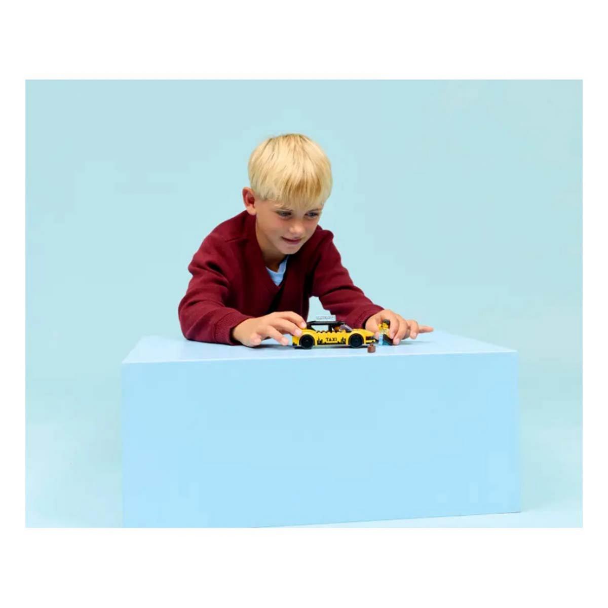 Kids aged 5 and up who love car toys and model building kits get twice the pleasure with the LEGO® City Taxi (60487). This fun toy building set features a yellow taxi cab with a modern electric vehicle design, an opening trunk with luggage, and a hood that lifts to reveal a pretend electric engine. The cool car toy comes with printed stickers including a GPS screen, taxi logo, rooftop advertisement and battery. Kids can also remove the roof to put in the cab driver and tourist minifigures for imaginative play and storytelling. This buildable electric-style car toy makes a great birthday gift or anytime surprise treat for kids, boys and girls. Add it to others (sold separately) from the LEGO City range for more exciting adventures. With the LEGO Builder app, kids can enjoy intuitive building using 3D instructions that let them zoom, rotate, save, and track progress – all from the app. Set contains 122 pieces.