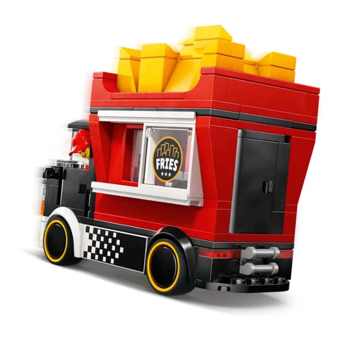 Serving fast food is child’s play with this LEGO® City Fries Food Truck (60488) toy building set for ages 5 and up. The colorful food truck features a detachable kiosk shaped like a giant carton of fries. Kids can remove the roof to access a detailed food prep area complete with a fryer, condiments and a sliding service window. This model fast food truck also features an opening hood with a toy engine and comes with vendor and customer minifigures. This play food set makes a great gift for 5-year-old boys, girls and kids who enjoy LEGO building and imaginative storytelling. Add it to others (sold separately) from the LEGO City range for citywide adventures. Kids can build this toy fast food truck with confidence using the LEGO Builder app – where they can zoom, rotate in 3D and track progress with easy-to-follow digital instructions. Set contains 216 pieces.