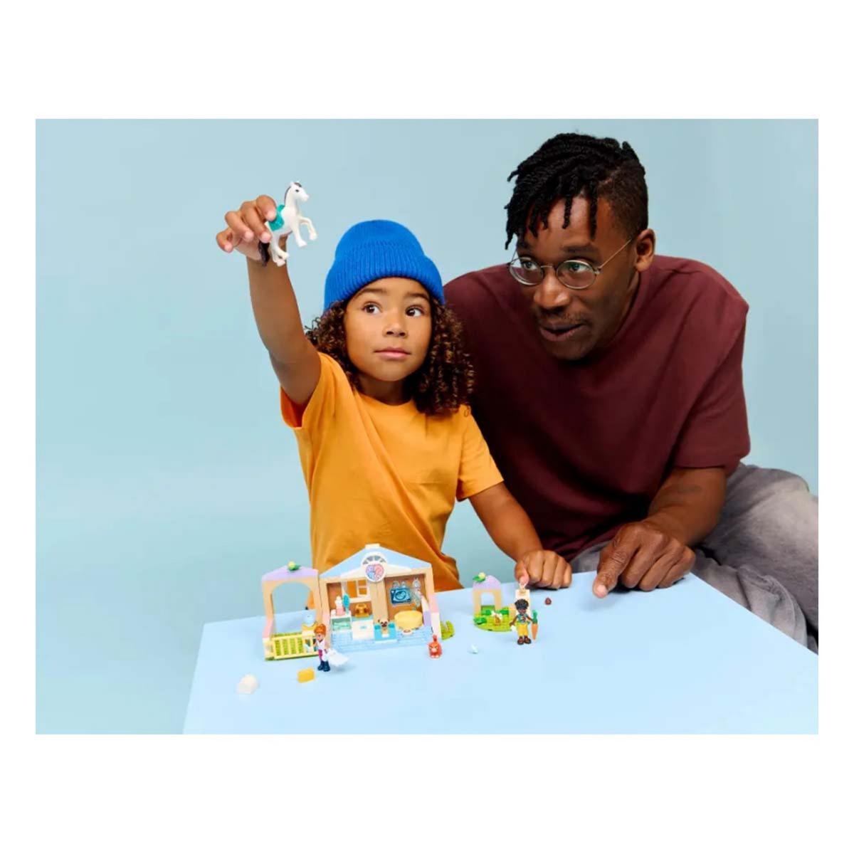 Encourage kids ages 4 and up to build their own stories with the LEGO® Friends Animal Vet Clinic (42696) playset for girls and boys. The detailed vet toy set is equipped with all your preschooler needs to role-play and care for the animals. There’s a horse stable, an examination room, pet beds, food, veterinary equipment, a pet playground and more. The toy set includes Leo and Valeria minidolls, plus a horse, a dog, a bunny and 2 cat figures. Vet-themed accessories such as a syringe, a thermometer and a clipboard and pen inspire make-believe play. For the horse, there’s a saddle, hay, a brush, a carrot, water, horse poop, and a helmet for a rider. This set makes a fun gift for preschoolers who love animal playsets. LEGO 4+ sets come withhelpful quick-start elements – larger pieces that help kids get started. With the LEGO Builder app, kids can enjoy a fun building experience where they can zoom in and rotate sets using 3D instructions and track progress. Set contains 141 pieces.