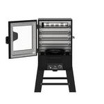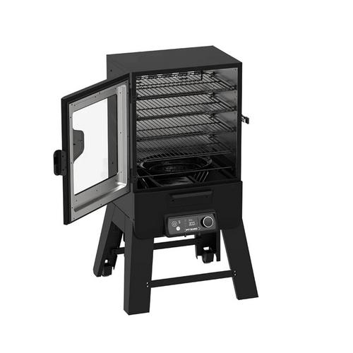 Elevate your backyard BBQ with the Pit Boss® 30" Digital Vertical Smoker. Engineered for bold flavor and effortless control, it brings professional-level smoking within reach—right from your phone. With 880 square inches of cooking space and four porcelain-coated racks, there’s room to smoke up to eight racks of ribs or multiple whole chickens at once. The 1,650-watt heating element and enclosed, sealed metal cabinet door deliver steady, even heat from 100°F to 300°F, locking in that authentic low-and-slow flavor Pit Boss is known for. The Wi-Fi and Bluetooth digital control board lets you set and monitor your cook anywhere through the Pit Boss Grills app. Add wood chips or pellets through the external tray to achieve smoky and rich results, without losing heat. Built from heavy-duty steel with a high-temp powder coat finish, this smoker is tough enough for everyday pitmasters and weekend warriors alike. Big flavor, simple control, serious results—this is smoking made easy.