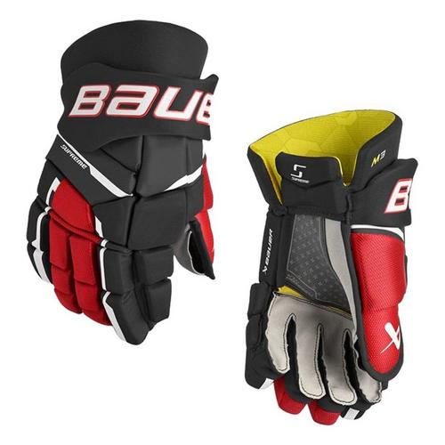 {"reviews":[],"offset":0,"limit":10,"total":0,"gtin":"688698602463"}"Full Description:\nThe perfect glove for developing players. The SUPREME M3 glove features an anatomical, tighter fit that allows for better feel and stick connection when shooting.\n\nFeatures:\n\u003cul>\n\u003cli>ShotBoost Fingers: Achieve optimal stick grip and increase shot precision with a 3-piece segmented middle and ring finger\u003c/li>\n\u003cli>Dual-Density Foam: Keep your hands safe from accidental slashes and shots up high with elite-level protection\u003c/li>\n\u003cli>2-Piece Flex Thumb: More flexibility in your thumb allows for a more anatomical fit\u003c/li>\n\u003cli>Flex-CONNEKT Palm: Get the most comfort and flexibility from day one\u003c/li>\n\u003cli>THERMOMAX Sub Liner: Built-in hydrophobic materials will help keep your glove dry all game long\u003c/li>\n\u003c/ul>\n\nSpecifications:\n\u003cul>\n\u003cli>Thumb: 2-Piece Flex thumb\u003c/li>\n\u003cli>Level: COMPETITIVE\u003c/li>\n\u003cli>Backhand: Pre-curved backhand with HD insert\u003c/li>\n\u003cli>Shell: Poly mesh and PU overlay\u003c/li>\n\u003cli>Gusset: Comfort stretch gusset\u003c/li>\n\u003cli>Fingers: ShotBoost fingers allow better stick contact when shooting\u003c/li>\n\u003cli>Cuffroll: Contoured cuffroll with molded logo\u003c/li>\n\u003cli>Palm: FLEX-CONNEKT palm\u003c/li>\n\u003cli>Liner: HYPER SENSE finger liner + THERMO MAX sub backhand pad\u003c/li>\n\u003cli>Style: 1061901\u003c/li>\n\u003c/ul>\n"