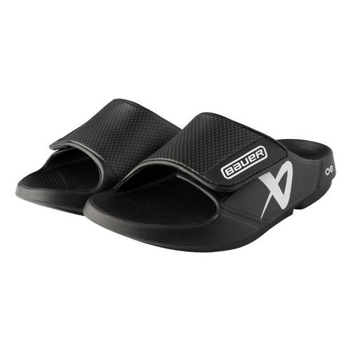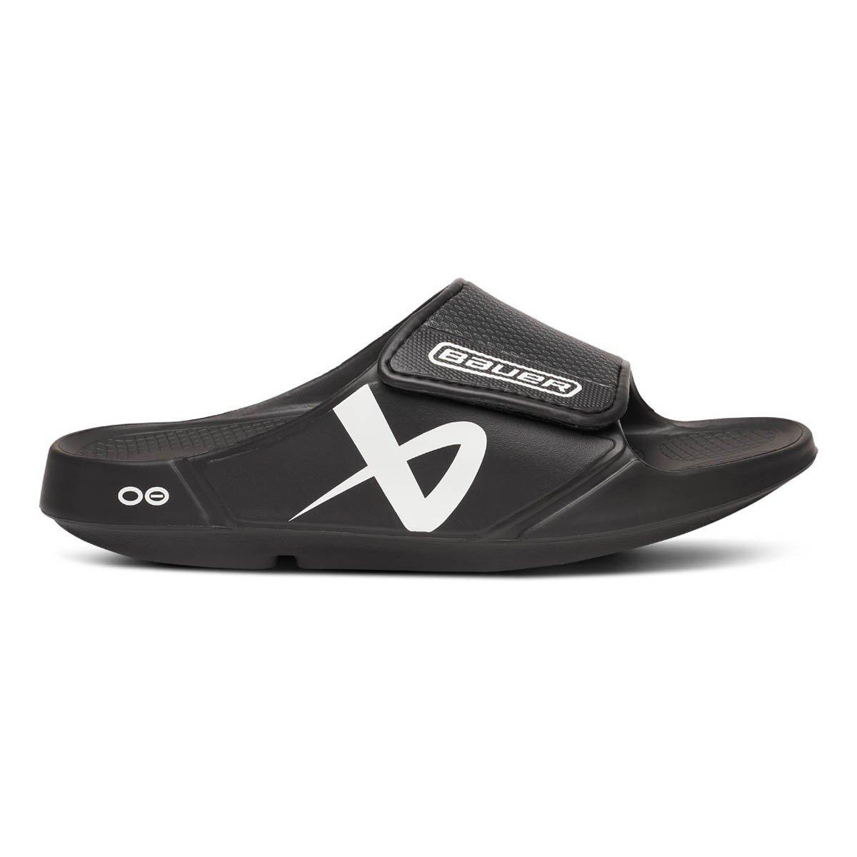 Take the next step in your postgame recovery. The BAUER | OOFOS® Sport Flex Slide is ultra-supportive and shockingly comfortable — featuring OOfoam™ technology that absorbs 37% more impact than traditional foam footwear and a patented footbed that cradles your arches to reduce stress on your joints. And with an adjustable Sport Flex strap that helps secure these sandals to your feet, you’ll be able to walk around the rink or gym without worrying about them slipping off.
