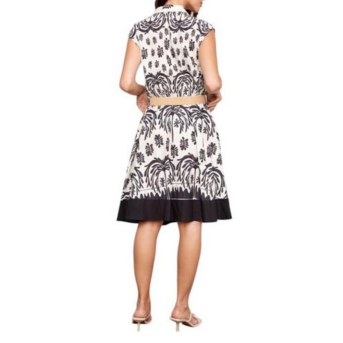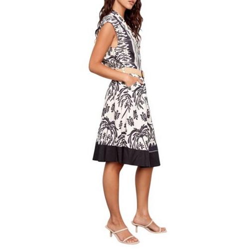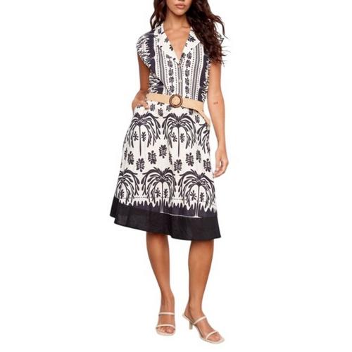 Women's Charlie B Printed Linen Cotton With Straw Belt Midi Dress