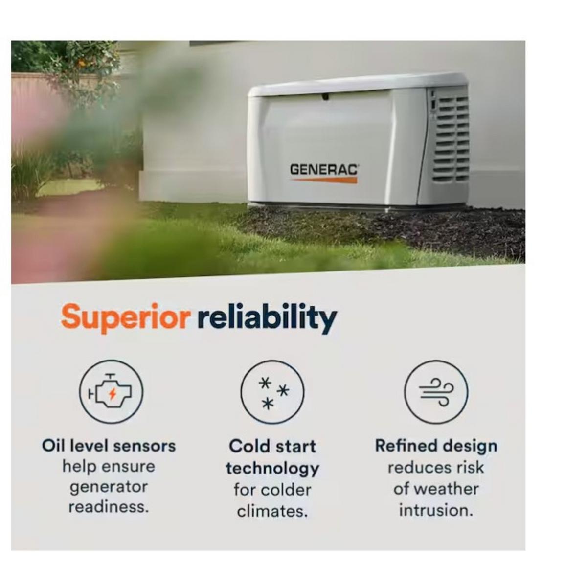 Generac Standby Generator, 14kW Bundled with Transfer Switch