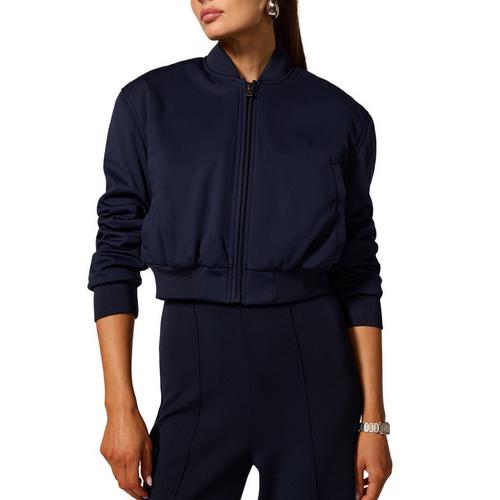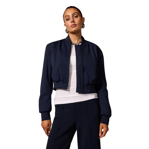 Introducing the Bomber Jacket. Cropped, with ribbed details for a flattering fit and zip pockets to keep your stuff secure. Effortless style that’s always on point, no matter where you’re headed.