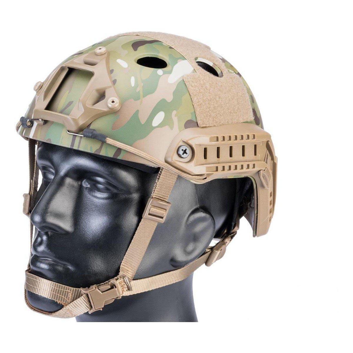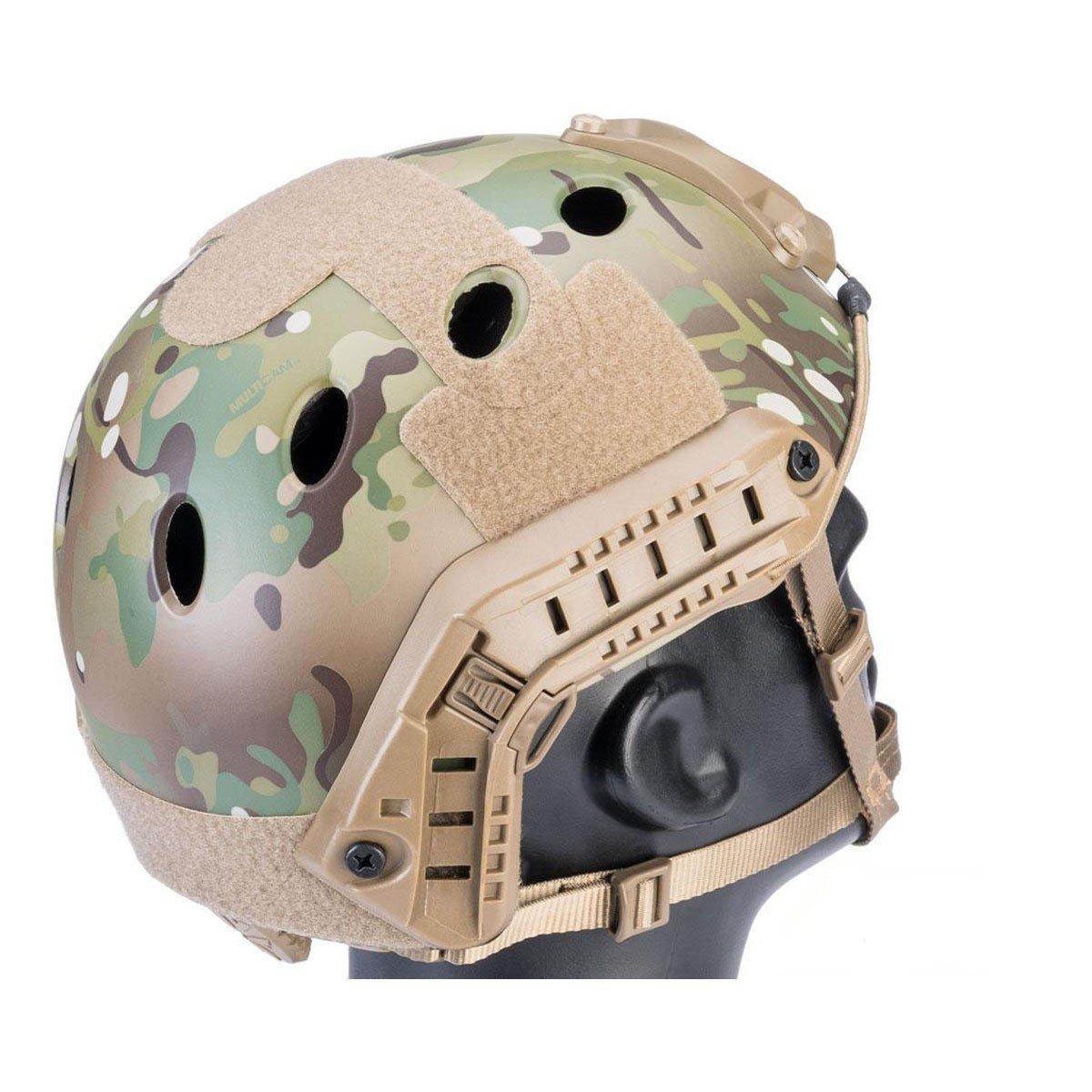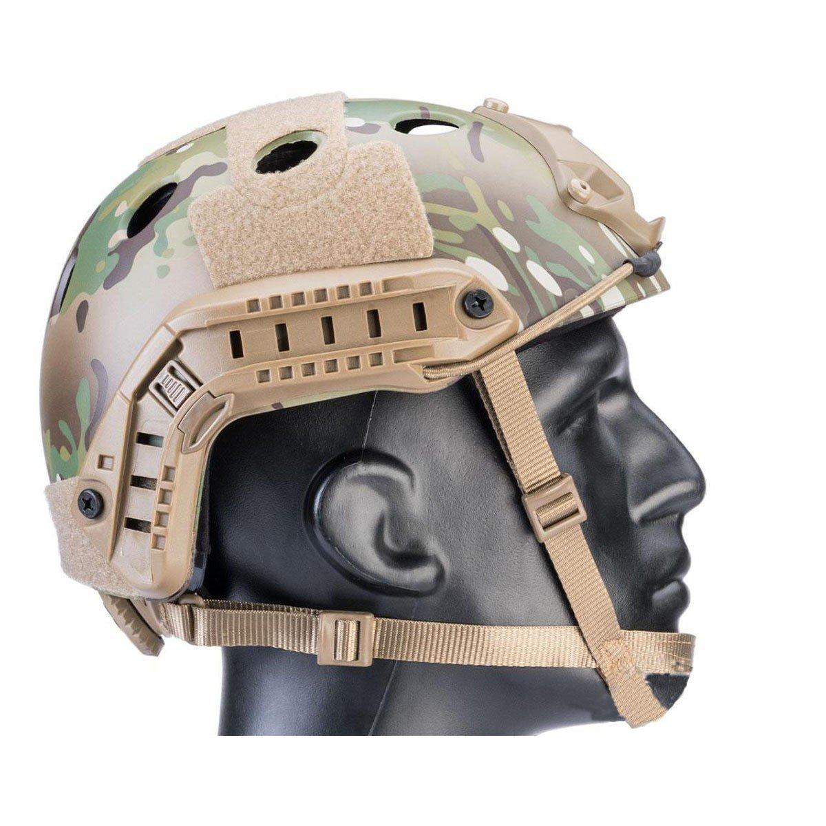 Prepare for any airsoft engagement with the 6mm Pro Shop Advanced PJ Type Tactical Airsoft Bump Helmet, built for a customizable and comfortable fit. This lightweight, hard-shell helmet offers complete adjustability from headband size to helmet height, easily managed with a rear adjustment dial and a comfort-lined chinstrap. 1 Removable and adjustable internal padding, with replacement sets available, ensures a personalized feel. Equip your tactical accessories using the integrated side rails and utilize the NVG mounting point (mount not included) for enhanced vision capabilities. With loop panels on all sides for morale patches and identification, this helmet, designed for a size range of 56cm to 66cm circumference, is an essential piece of airsoft gear.