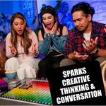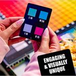 Gather around with three to ten people to play a quick and simple game with a prism of possibilities! First, a “cue giver” hides a specific color they’ve chosen out of a deck of cards. There are 480 shades on the board in front of you! After getting one- and two-word cues, everyone places their marker on which color they think is being described. “Coffee.” Is it dark brown, as in freshly brewed? “Au lait.” With milk. That means I should pick a lighter shade!