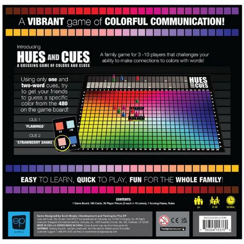 Hues and Cues® is the award-winning vibrant game of colorful communication where players are challenged to make connections to colors with words. Since everyone imagines colors differently, connecting colors and clues has never been this much fun!