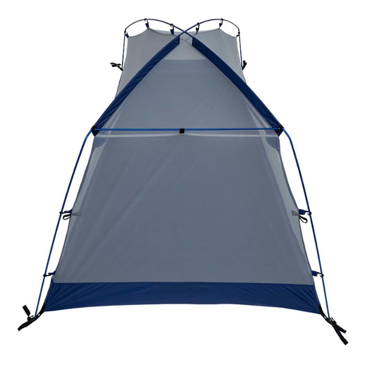 The Zephyr model is ideal for those hot, muggy nights when you want to feel a breeze in your tent. The walls are composed entirely of mesh, allowing maximum ventilation and fresh air. The unique 2 pole design gives you more head room to sit up, without feeling cramped. The Zephyr features aircraft alloy aluminum poles, which are strong and lightweight. There are two doors to make it easy to get in and out of the tent, and a vestibule over both doors for a great place to store your extra gear. The fly buckles to the tent, offering a much more secure attachment when compared to elastic cord. Incredible ventilation, great head room, and lightweight... a great combination, creating a high quality tent!