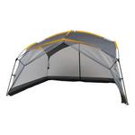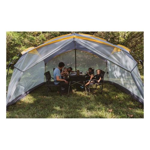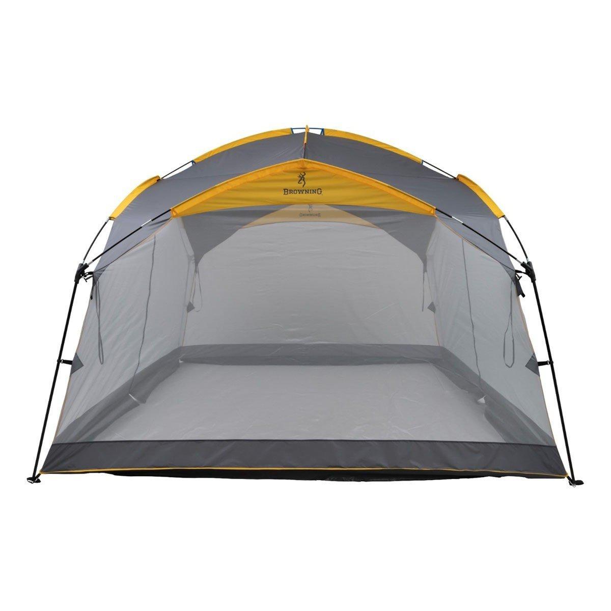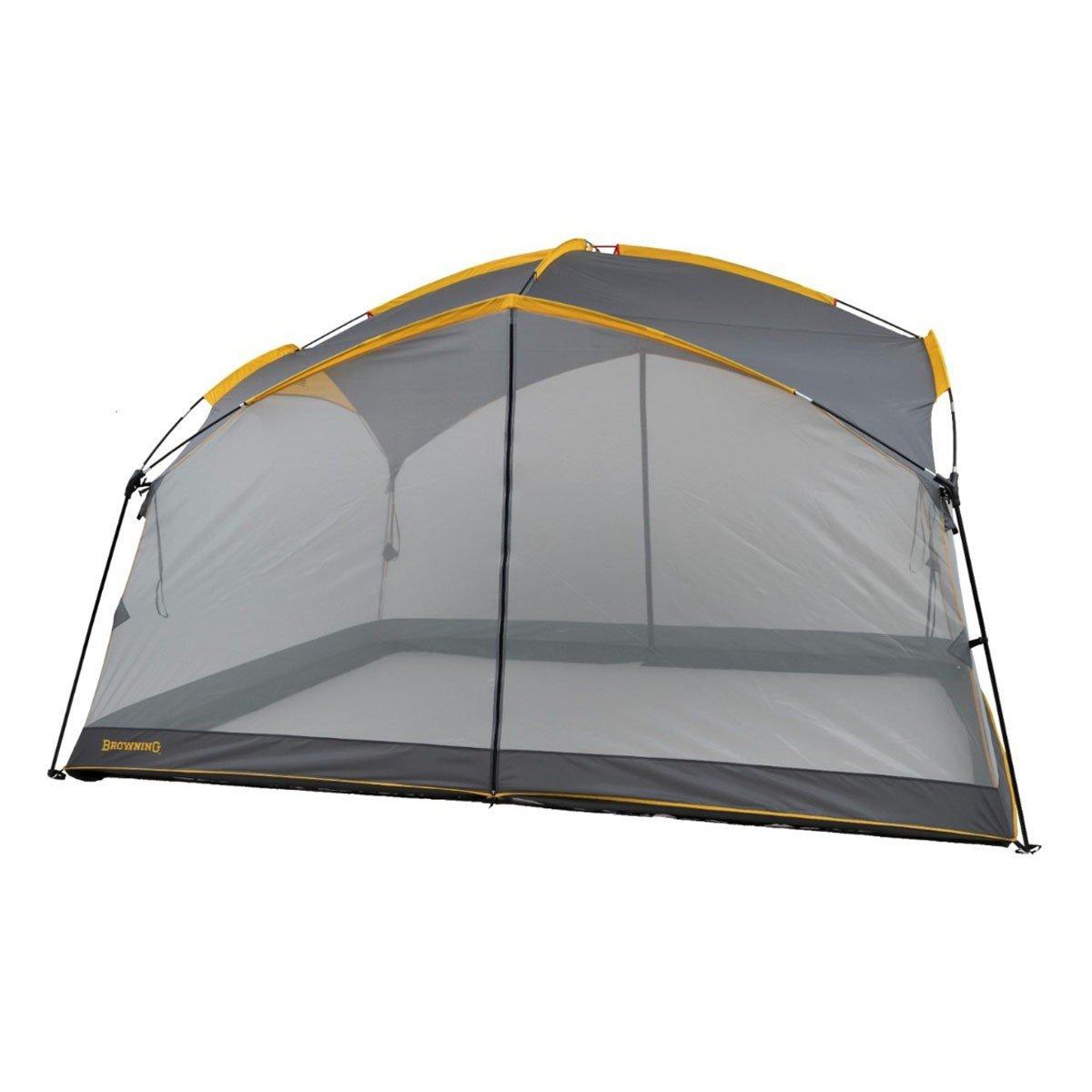 The outdoors is always more enjoyable without mosquitoes, flies and bees flying around you. The Browning Basecamp Screen House sets up quickly with color coded fiberglass poles and steel uprights. The large, vertical mesh walls allow air flow, while the waterproof and seam sealed room provides protection from the sun and rain. Features: ·68D 190T polyester top resists UV damage and stays taut ·Mesh sidewalls allow ventilation while providing a bug barrier ·Storage bag, guy ropes, and steel stakes included Specifications: ·Base Size: 10' x 12' ·Center Height: 7'4 ·Floor Area: 120 ft² ·Total Weight: 17 lbs. 14 oz. ·Packed Size: 8" x 8" x 27" ·Pole Diameter: 9.5 mm fiberglass | 16 mm steel