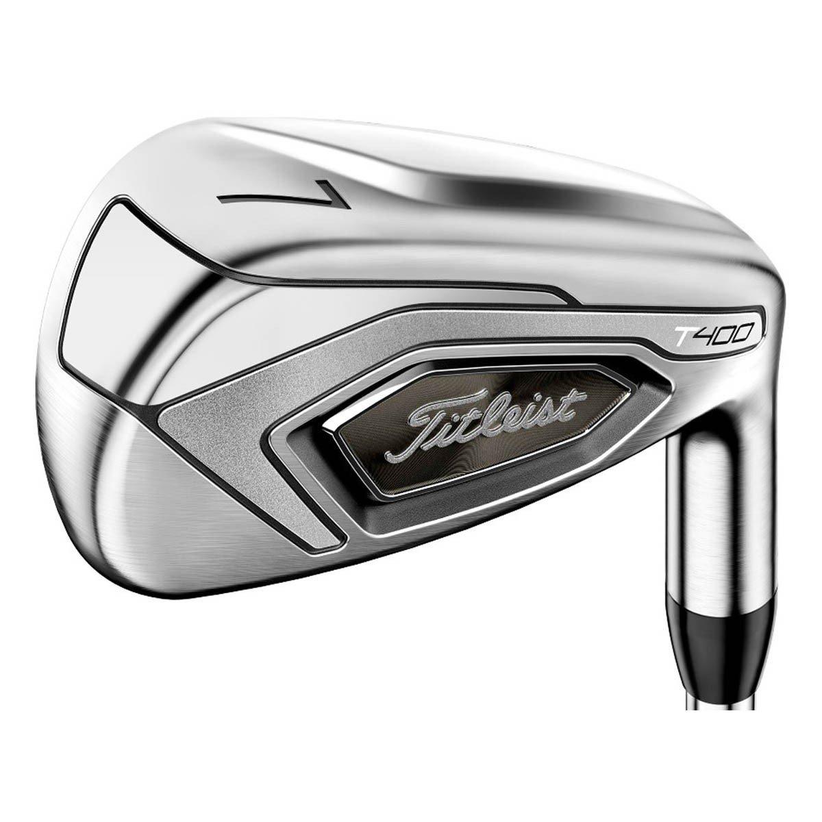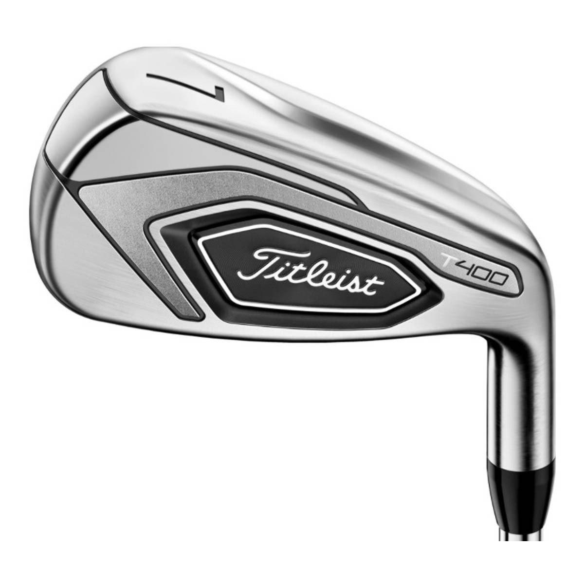 {"reviews":[],"offset":0,"limit":10,"total":0}"Full Description:\nHit the ball longer and higher with the Titleist T400 Irons. The most forgiving Titleist irons to date. The T400 Irons equip golfers with greater distance with a lower edge that wraps around the sole. Overall, the T400 produces the most distance possible while providing maximum forgiveness. The wide-body shape and Split Sole design allow for increased turf interaction and a smooth strike. A hollow head construction delivers high MOI for longer and straighter flight. High-density tungsten weighting combined with a super-thin face provides high launch and consistent distance. <br />\n<br />\n \n<table border="1" cellpadding="1" cellspacing="1" style="width:500px">\n\t<tbody>\n\t\t<tr>\n\t\t\t<td style="text-align:center"><strong>Club</strong></td>\n\t\t\t<td style="text-align:center"><strong>Loft</strong></td>\n\t\t\t<td style="text-align:center"><strong>Lie</strong></td>\n\t\t\t<td style="text-align:center"><strong>Length</strong></td>\n\t\t</tr>\n\t\t<tr>\n\t\t\t<td style="text-align:center"><strong>6</strong></td>\n\t\t\t<td style="text-align:center">23°</td>\n\t\t\t<td style="text-align:center">62.5°</td>\n\t\t\t<td style="text-align:center">37.50"</td>\n\t\t</tr>\n\t\t<tr>\n\t\t\t<td style="text-align:center"><strong>7</strong></td>\n\t\t\t<td style="text-align:center">26°</td>\n\t\t\t<td style="text-align:center">63°</td>\n\t\t\t<td style="text-align:center">37.00"</td>\n\t\t</tr>\n\t\t<tr>\n\t\t\t<td style="text-align:center"><strong>8</strong></td>\n\t\t\t<td style="text-align:center">29°</td>\n\t\t\t<td style="text-align:center">63.5°</td>\n\t\t\t<td style="text-align:center">36.50"</td>\n\t\t</tr>\n\t\t<tr>\n\t\t\t<td style="text-align:center"><strong>9</strong></td>\n\t\t\t<td style="text-align:center">33°</td>\n\t\t\t<td style="text-align:center">64°</td>\n\t\t\t<td style="text-align:center">36.00"</td>\n\t\t</tr>\n\t\t<tr>\n\t\t\t<td style="text-align:center"><strong>PW</strong></td>\n\t\t\t<td style="text-align:center">38°</td>\n\t\t\t<td style="text-align:center">64°</td>\n\t\t\t<td style="text-align:center">35.75"</td>\n\t\t</tr>\n\t\t<tr>\n\t\t\t<td style="text-align:center"><strong>AW</strong></td>\n\t\t\t<td style="text-align:center">43°</td>\n\t\t\t<td style="text-align:center">64°</td>\n\t\t\t<td style="text-align:center">35.50"</td>\n\t\t</tr>\n\t\t<tr>\n\t\t\t<td style="text-align:center"><strong>GW</strong></td>\n\t\t\t<td style="text-align:center">49°</td>\n\t\t\t<td style="text-align:center">64°</td>\n\t\t\t<td style="text-align:center">35.50"</td>\n\t\t</tr>\n\t</tbody>\n</table>\n\nFeatures:\n\u003cul>\n\u003cli>Progressive blade lengths, sole widths, and hosel lengths provide ideal CG positioning with preferred shaping through the set\u003c/li>\n\u003cli>High-density tungsten weighting creates a low Center of Gravity for high launch and consistent distance\u003c/li>\n\u003cli>Ultra-thin forged SUP-10 L-Face Insert in the 5-7 irons delivers explosive launch and increased ball speeds\u003c/li>\n\u003cli>Hollow head construction offers a high MOI that maximizes forgiveness on off-center shots\u003c/li>\n\u003cli>Constructed with a wide-body shape that features a Split Sole design for increased turf interaction and a smooth strike\u003c/li>\n\u003cli>Extreme Forgiveness: The hollow construction allows weight to be moved where it can help you most, delivering outstanding MOI for shots that fly longer and straighter across the face.\u003c/li>\n\u003cli>Smooth Turf Interaction: The innovative split-sole preserves the performance benefits of the wide-body design while sliding through the turf like a player’s iron.\u003c/li>\n\u003cli>Easy Launch: Up to 100 grams of high-density tungsten is strategically integrated into the heel and toe of the 5, 6, and 7 irons to lower the center of gravity and launch the ball high and far.\u003c/li>\n\u003cli>Better Performance: Every aspect of Titleist T400 irons is engineered to produce greater playing distance – starting with the incredibly fast Super Thin L-Face. The lower edge of the face wraps around the sole, maintaining ball speed even when the impact is made lower on the face. Masterfully fused with a confidence-inducing head shape, it makes faster feel effortless.\u003c/li>\n\u003c/ul>\n\nSpecifications:\n\u003cul>\n\u003cli>Grip - Golf Pride Tour Velvet 360 Lite\u003c/li>\n\u003cli>True Temper AMT Red Steel\u003c/li>\n\u003c/ul>\n"