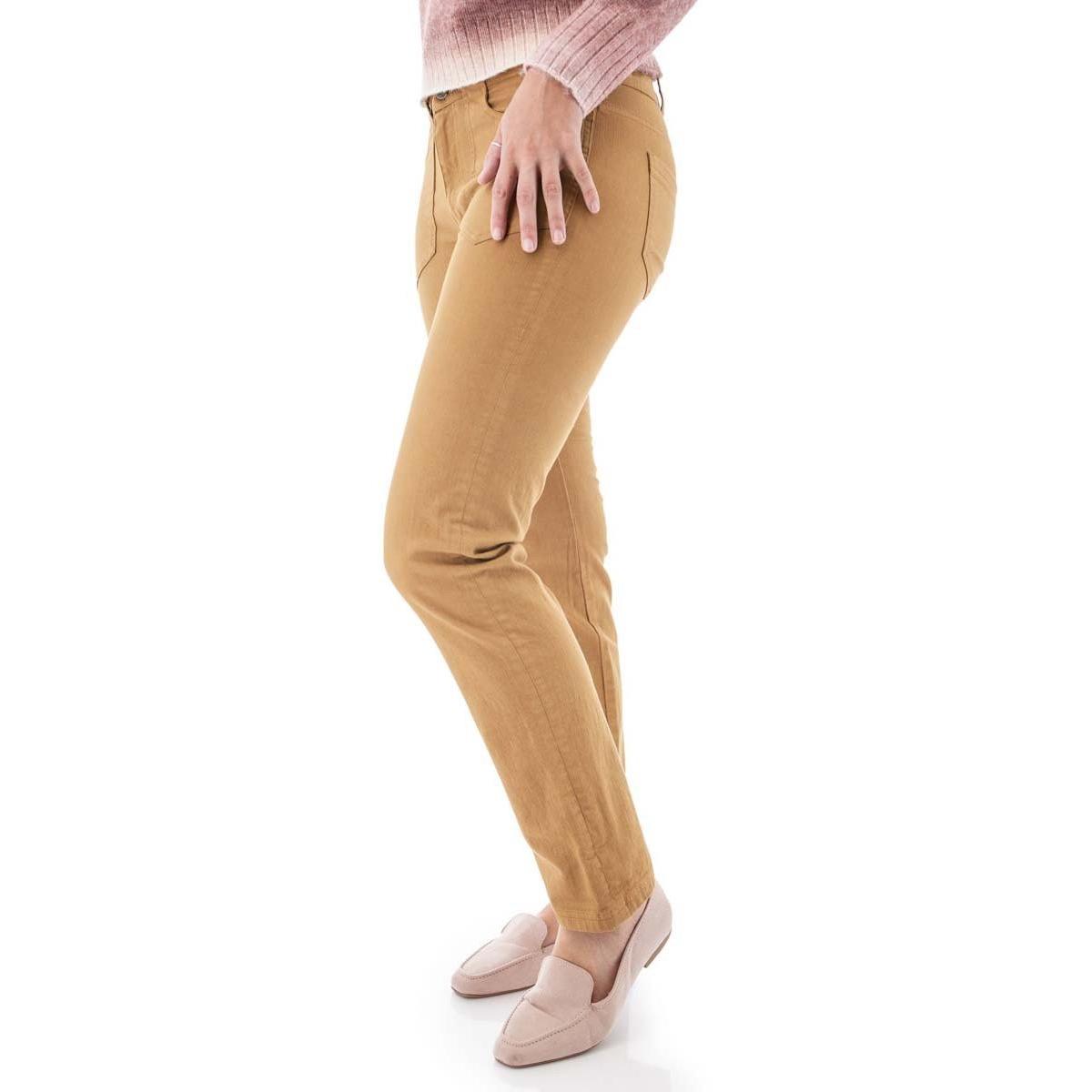 The Fair Trade Certified™ Dawson Straight Leg Pant is a staple for any wardrobe. The eco-friendly fabric is made from 98% organic cotton and just enough spandex to give you a comfortable stretch. The fabric is a herringbone weave, which not only gives it a great visual appeal but also gives the pant a comfortable, worn-in feel. Subtle details throughout show the thoughtfulness of our women-led design team and the quality of this pant. One example of this is the wide waistband, which helps prevent the pant from digging into your stomach. The decorative tape details on the leg opening are shown when rolled up, perfect for adding that pop when pairing with boots.