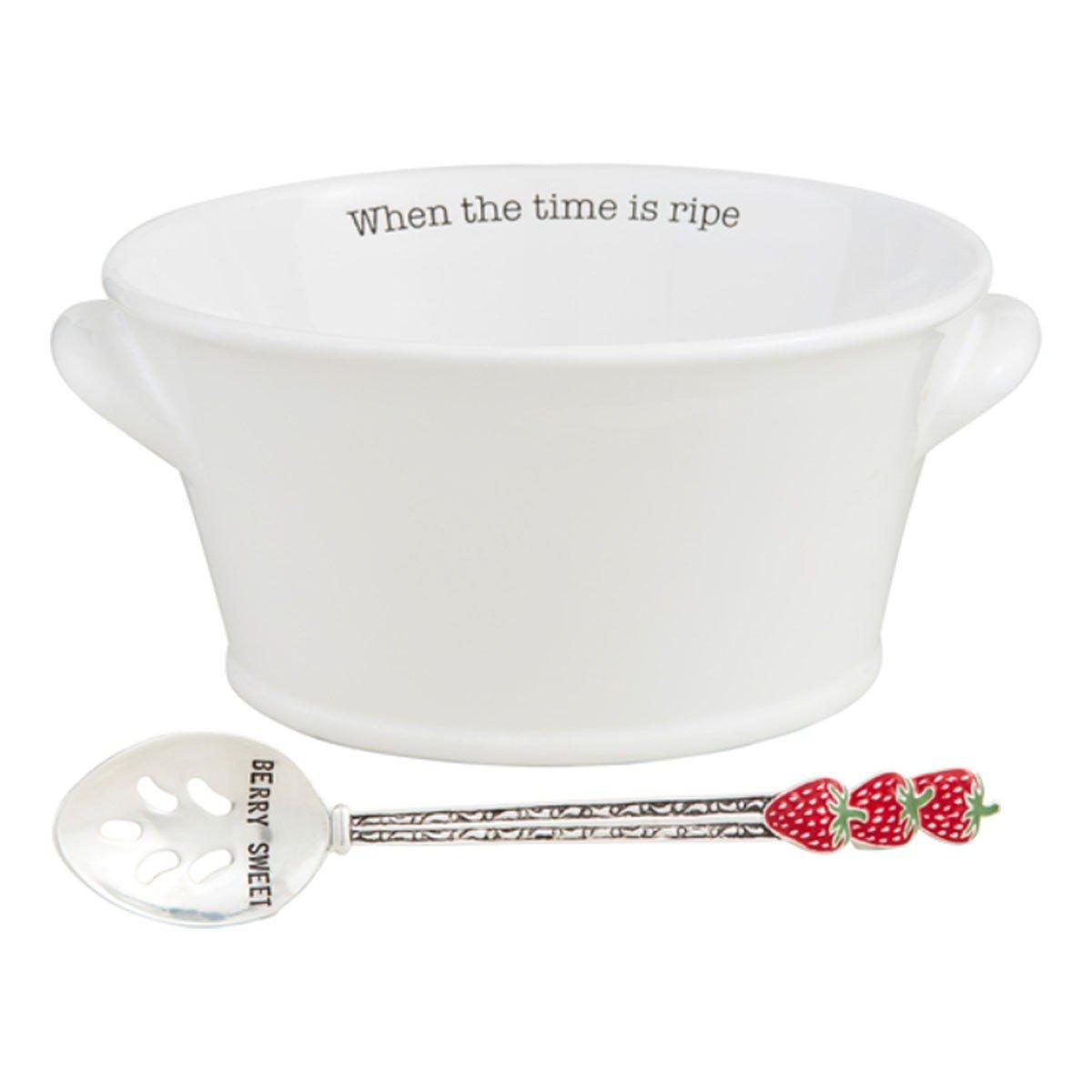 The Fruit Bowl and Spoon Set is a charming 2-piece collection designed to enhance your dining experience. This set features a beautifully crafted ceramic berry bowl, complete with convenient side handles for easy carrying and serving. The bowl's generous size, measuring 4 1/2 inches in height and 9 1/4 inches in diameter, makes it perfect for holding a variety of fruits or snacks. Accompanying the bowl is a stunning stamped silverplate spoon, elegantly designed with an enamel-coated strawberry handle, adding a touch of whimsy and sophistication to your table setting. Made from high-quality dolomite, this set combines durability with aesthetic appeal, making it an ideal choice for both everyday use and special occasions.