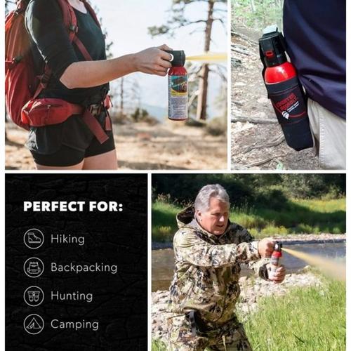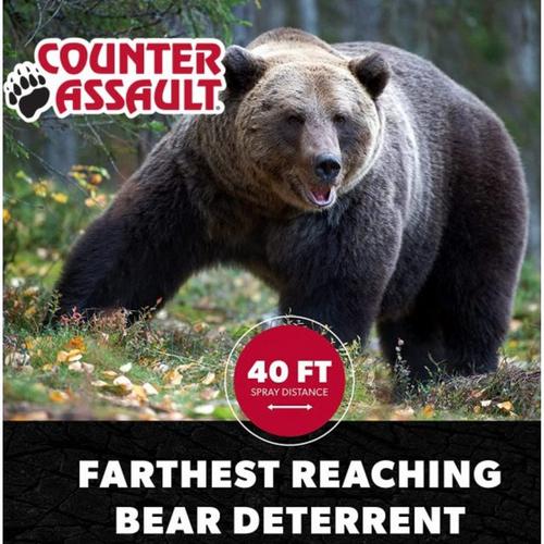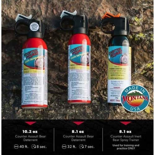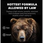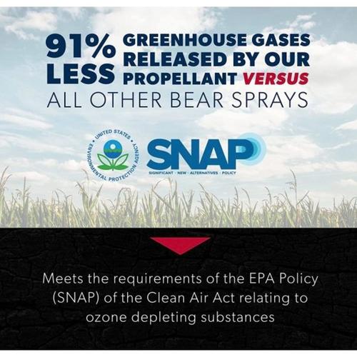 Contains 2% Capsaicin and Related Capsaicinoids, the maximum allowed by law. Works on all bear species to deter bears from attacking humans. Great for Backpacking and Hiking. Counter Assault Bear Spray’s NEW innovative formula produces the optimal combination of spray time and spray distance. Deploys a high volume, powerful, atomized blast of highly concentrated pepper spray to deter a bear attack. Registered with the EPA, and meets the requirements of the EPA Significant new Alternative Policy (SNAP) of the Clean Air Act relating to ozone depleting substances.