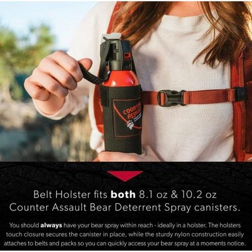 Belt Holster fits both 8.1oz & 10.2oz Counter Assault Bear Spray canisters.