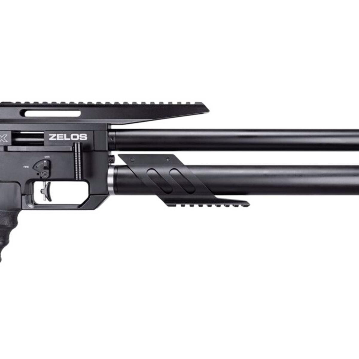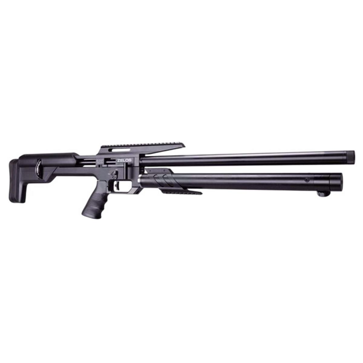 If you are ready to scratch the itch of of precision pneumatic pellet shooting, look to the Umarex Zelos platform for relief. The Zelos is a bullpup PCP that stuffs 26 inches of barrel into a compact 36 inch package. The natural result of such a long barrel length is power and accuracy with the added convenience of a very easy handling bullpup platform. The Zelos in .22 caliber utilizes a 20 round auto-indexing rotary magazine and features an on-board tank that fills to a maximum pressure of 3625 PSI. This 250cc tank is free-floated from the barrel and fitted with an 8-slot Picatinny accessory rail. Zero in your favorite optic on the 21-slot top Picatinny rail and start sending pellets downrange with precision. In fact, you will be able to easily tune the Zelos to your best perfoming ammo via the reciever-housed adjustable regulator. Feel free to shoot the Zelos the way it comes out of the box or attach an aftermarket muzzle device to the 1/2" X 20 threads found underneath the barrel nut.