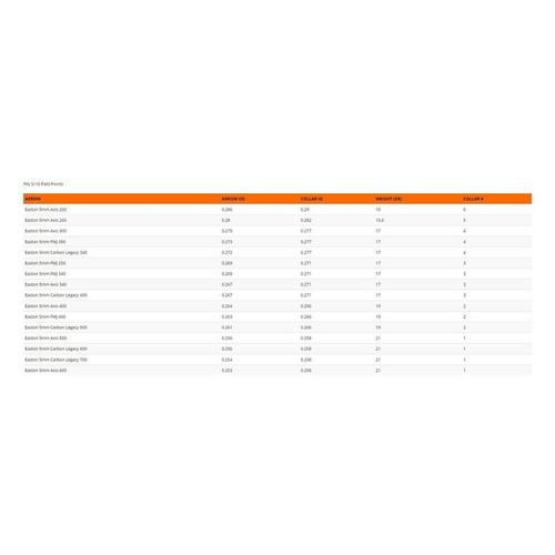 Easton Match Grade HIT Collars. Designed from the feedback of Easton’s top shooters and pro shops, Easton’s new Match Grade HIT Collar are designed to increase the impact strength of an arrow using the HIT system. Built out of hardened stainless steel. Come in 6 sizes to accommodate all 5mm Easton Arrows. Included with Easton Match Grade 5mm Arrows. Can be purchased separately for many 5mm arrows on the market.