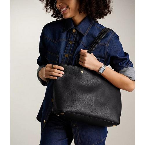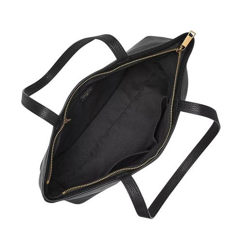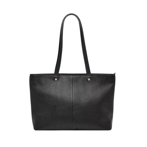 Introducing the Jessie Leather Top Zip Tote—an everyday essential with a fresh, modern look. Crafted from rich black leather with gold-tone hardware, this spacious tote offers ample interior space and secures all your essentials with a top zip closure. Slide pockets and a zippered compartment keep you organized. Refined yet relaxed, the Jessie Tote is the perfect companion for your spring adventures. Fossil leather products support responsible manufacturing via the Leather Working Group.