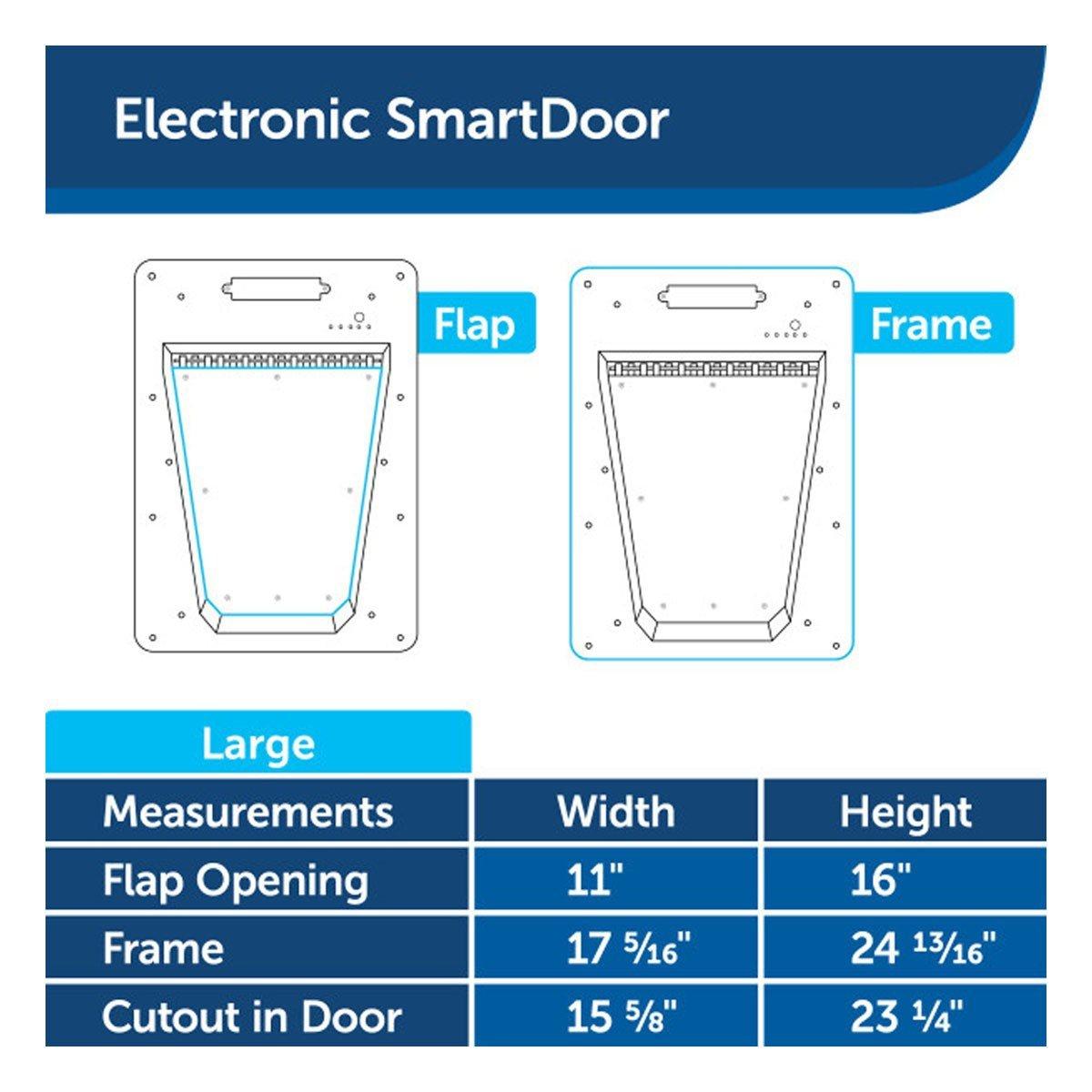 The PetSafe SmartDoor™ allows you to control your pet’s access. When set to automatic mode, only your pets wearing the SmartKey™ can pass through the SmartDoor™. As your pet enters the range of the SmartDoor™, the SmartDoor™ detects the SmartKey™ and unlocks automatically. The range is adjustable up to 3 feet. After your pet passes through the SmartDoor™, the door will lock automatically helping to keep the house pets in and outdoor animals out. Trust PetSafe to help keep your pet healthy, safe and happy.
