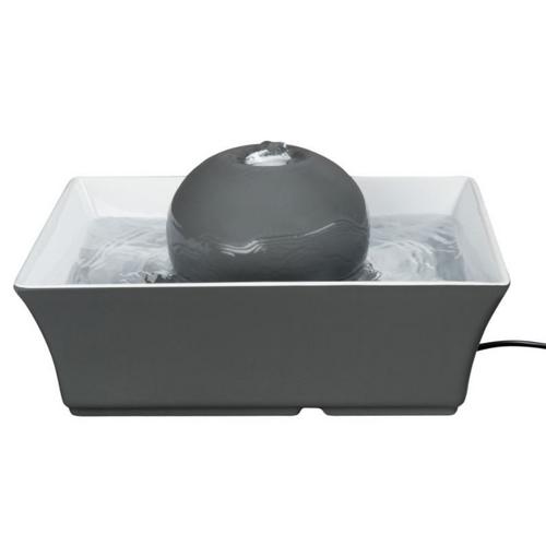The PetSafe Drinkwell® Seascape Pet Fountain provides 70 ounces of fresh, filtered water. The low-voltage, submersible pump constantly circulates the water, keeping it clean and appealing to pets. The soothing flow of water is extremely quiet, making it easily approachable. The gray ceramic design is easy to clean and top-shelf dishwasher safe. The Seascape Pet Fountain not only fits seamlessly with modern home décor, but it also keeps pets healthy and hydrated.