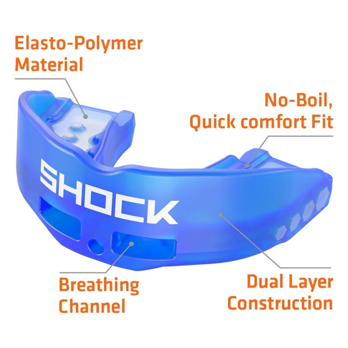 The Shock Doctor Insta-Fit Mouthguard is the perfect solution for first-time mouthguard users and younger athletes. No boiling is required! Simply pop in and play. Featuring an integrated breathing channel and soft bite plate, you can breathe easy and stay comfortable during play. Plus, this mouthguard meets national and state high school rules, and comes with a tether. Don't wait - get the Shock Doctor Insta-Fit Mouthguard for your young athlete today for ultimate comfort, protection, and performance!