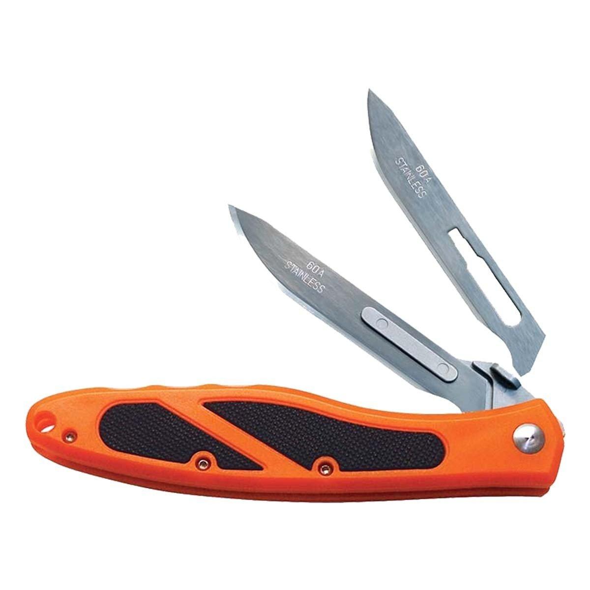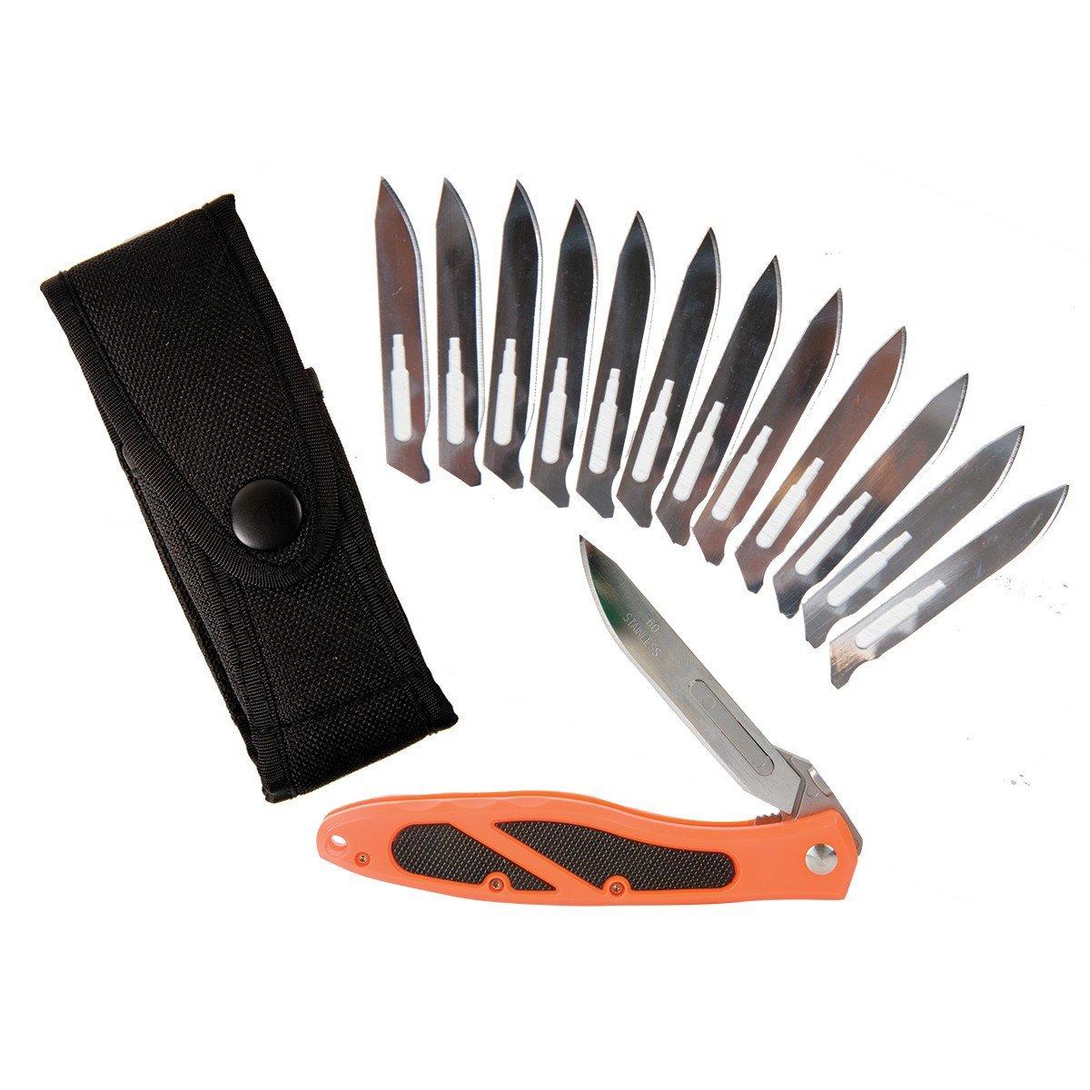 The Havalon Piranta Edge Folding Knife gives you a high-quality single knife with replaceable blades. The handle of the Piranta Edge knife is made with ABS plastic and has textured grip panels for a secure grip. Plus, the Piranta SS Knife comes with 6 additional replacement blades so it's always sharp and ready to go! In addition, the Havalon Piranta also comes with a nylon holster and a removable holster clip so you can easily carry it through the field. For faster, easier skinning and field dressing, choose the Havalon Piranta Edge Knife.