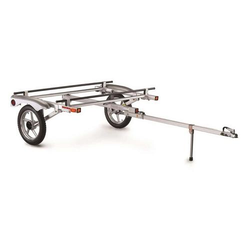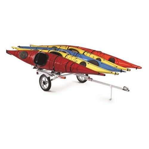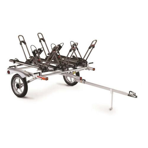 Never be forced to choose between your favorite activities and gear. Maximize your gear hauling choices by adding a sturdy, lightweight trailer.The RackandRoll trailer is made of lightweight aluminum and offers a stable, secure ride for *all* your gear. Stores easily upright in the off-season.