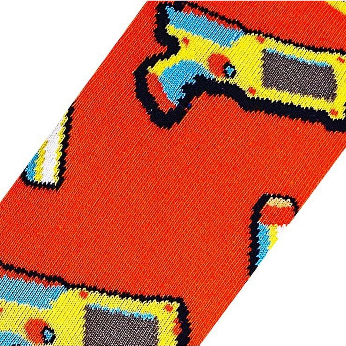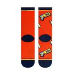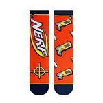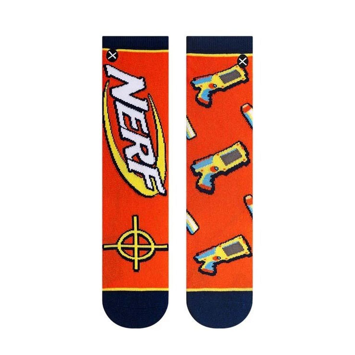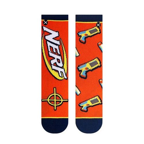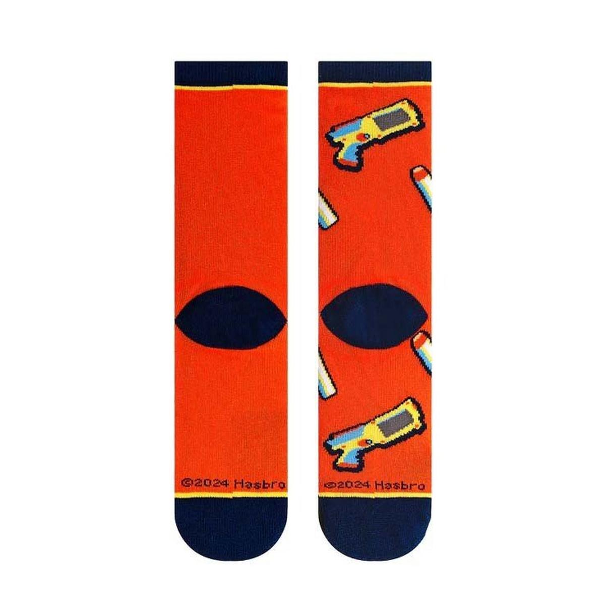 Get ready to blast into action with these Nerf Split Crew Socks, designed for big kids ages 7-10. Featuring vibrant orange and blue colors with dynamic Nerf graphics, these socks capture the excitement of the ultimate dart-blasting brand. The design showcases Nerf blasters and a target symbol, making every step feel like part of an epic game. Crafted from soft, breathable fabric, these crew socks offer all-day comfort and durability, perfect for active, moving kids. Whether they're playing indoors or out, these socks add fun to any outfit, embodying the thrill and energy of Nerf battles. Let your child show off their love for all things Nerf with these standout socks that keep the action going from head to toe!