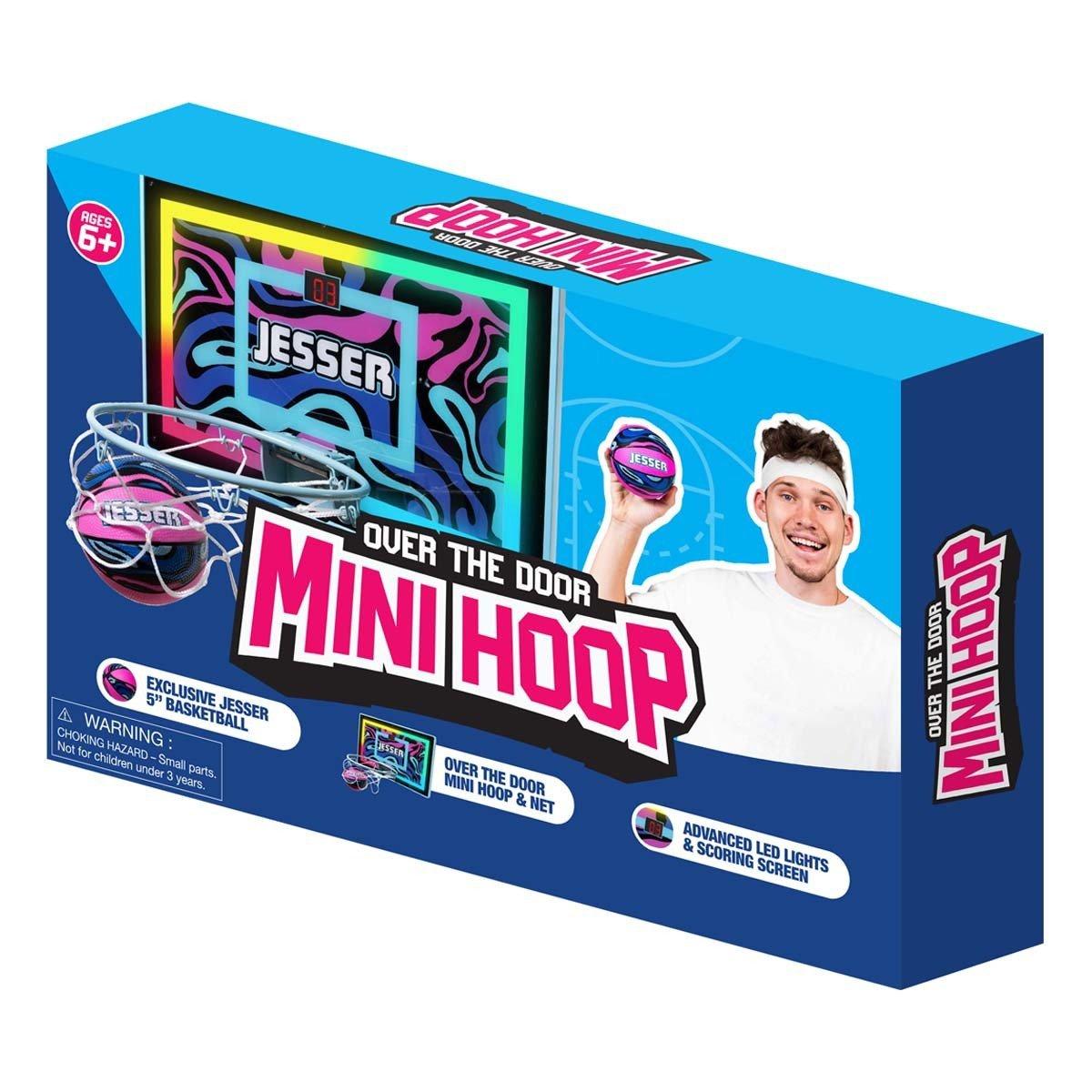 Jesser Hoop Over The Door Mini Basketball Hoop – 2 Gameplay Modes: Shot Clock or Score Keeping, 5" Exclusive Ball, Electric LED Scoring, Net, Air Pump - Indoor Sports Fun for Kids 6+. Everything you need to play & elevate your indoor basketball game! EASY SET UP Simply hang the mini hoop on top of any standard-size door. The foldable hoop design saves storage space & does not affect opening and closing the door.