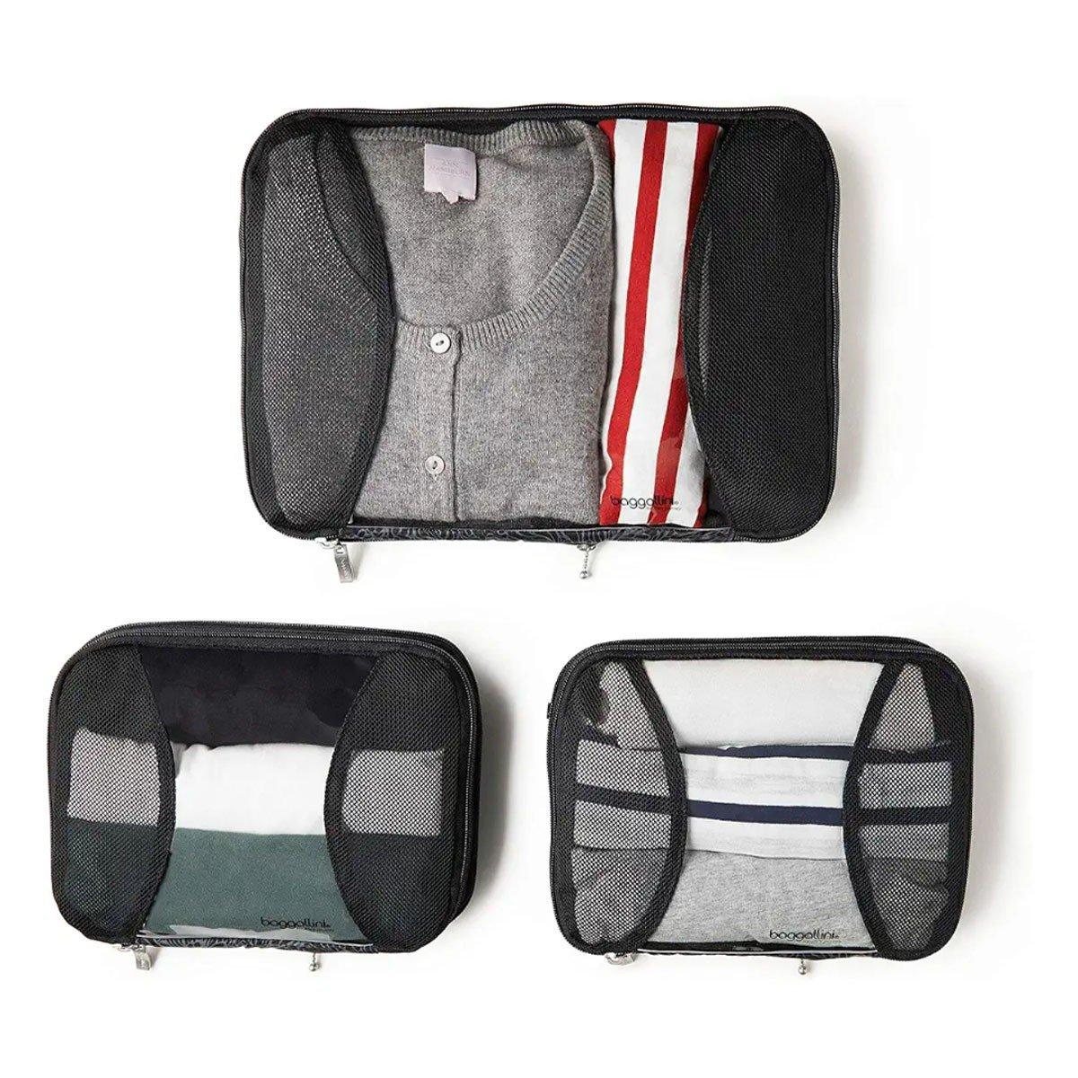 Featuring modular designs that fit perfectly in baggallini luggage, these packing cubes are a must-have for efficient organization. The medium compression cubes and large compression cube have clear panels to help you find essentials with just a glance, and ventilated mesh helps keep things fresh. Prepare to love packing!