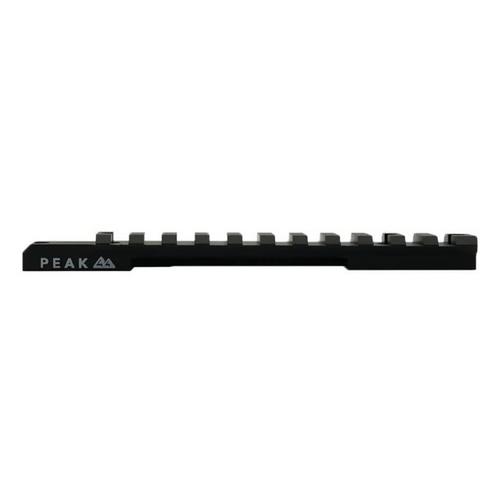 The PEAK 44 Picatinny Rail (JRail) features an innovative design with a rear cutout that ensures optimal scope placement for hunters and shooters who demand the most from their firearms. The Jrail rear cutout allows for the use of low rings, proper eye relief, and can accommodate large objective scopes. Constructed from aerospace aluminum the JRail fits picatinny/weaver style rings and is available in 20 MOA.