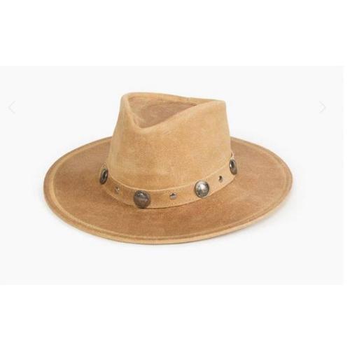 This durable classic is handmade from genuine ruff leather that keeps the sun and other elements out. A band wraps around with studs and unique Buffalo nickel metal accents with a small tie in back. Personalize this wide brimmed hat by shaping it to suit your style. The brim has hidden steel wire, so you can wear this western hat any way you want.