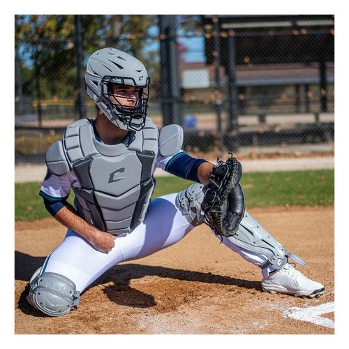 A collection of all the protective equipment catchers need to get behind the plate. Includes the Boss Catcher's Helmet, Optimus Champion Plus Chest Protector, and Optimus Pro Leg Guards