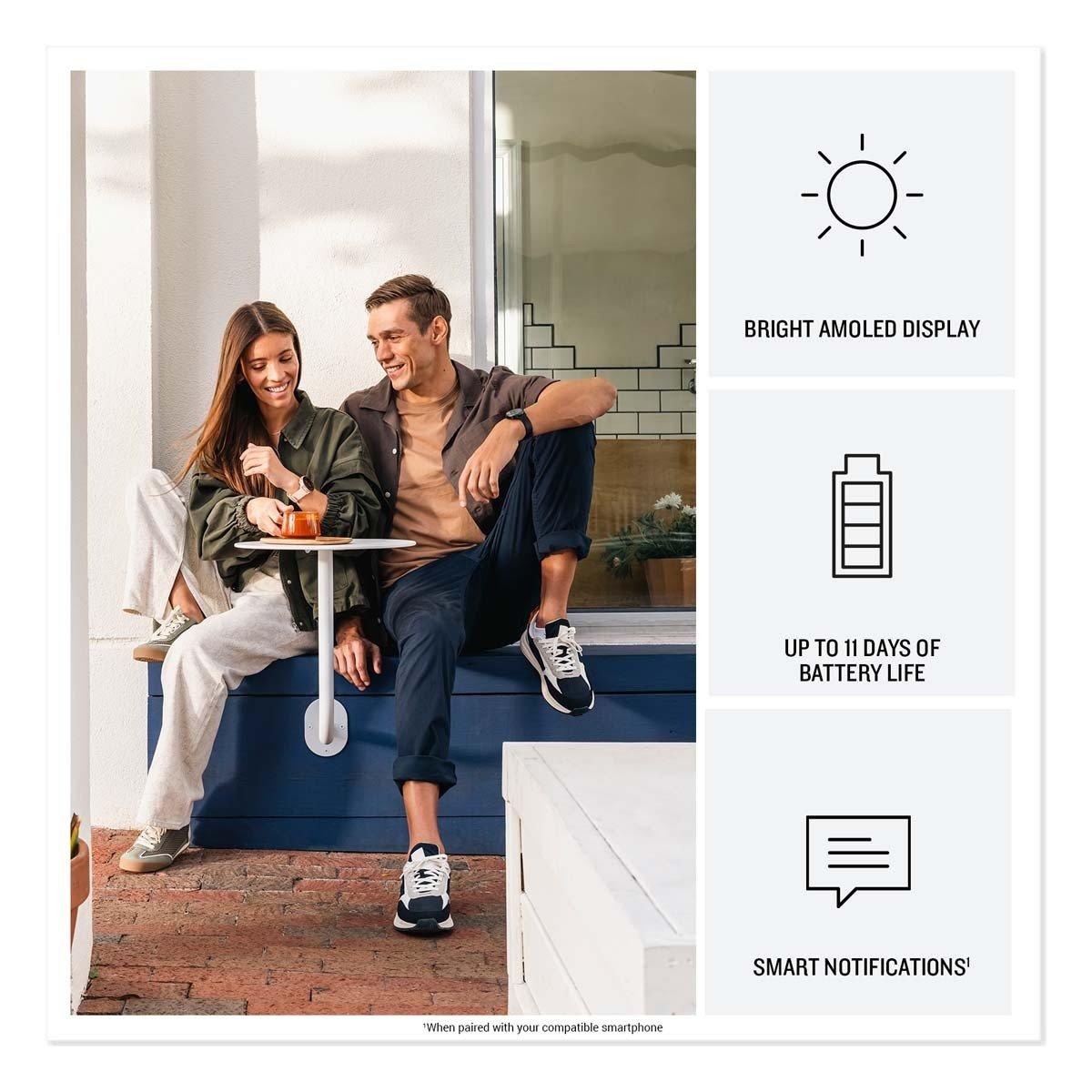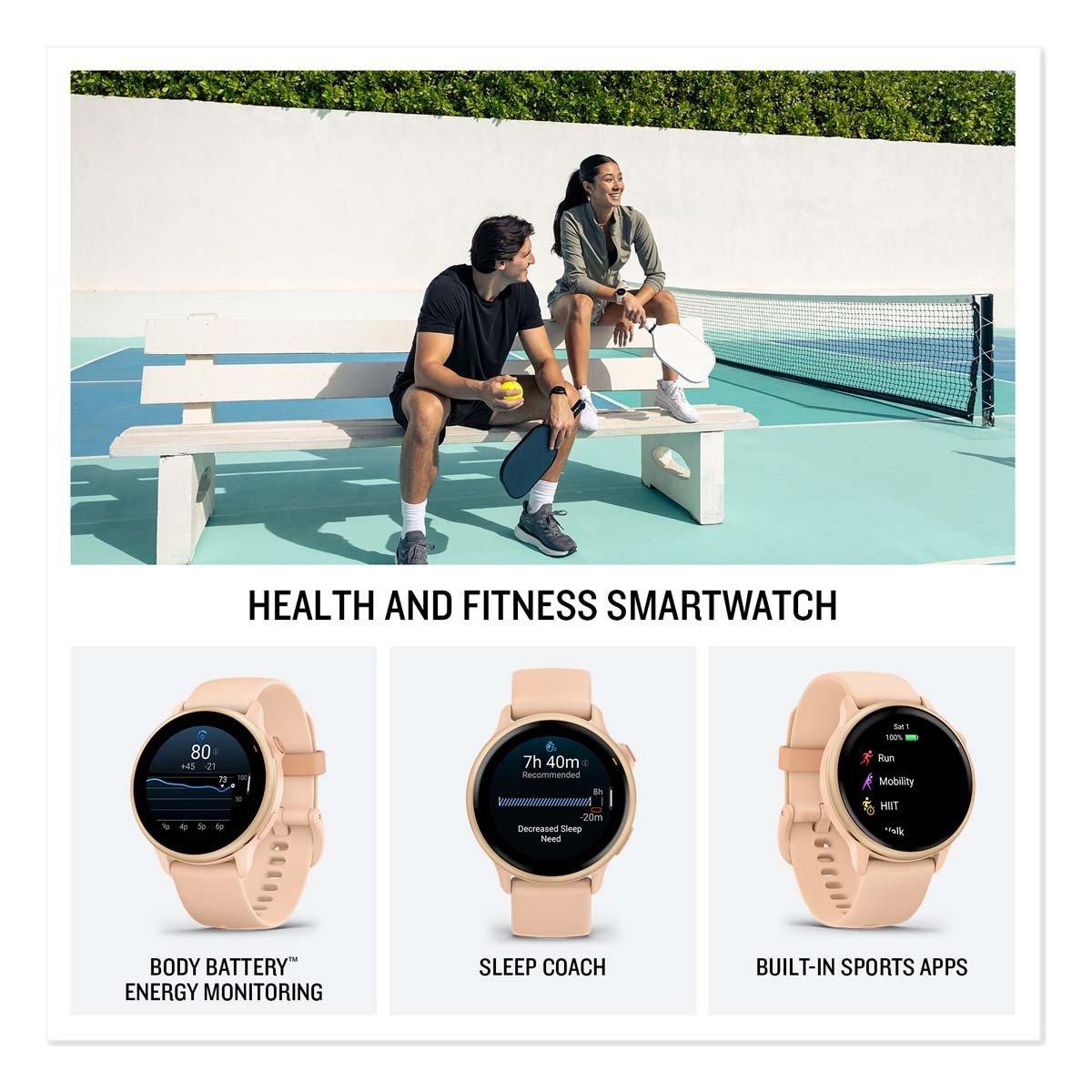 Understand your body better with vívoactive® 6, the health and wellness smartwatch. Featuring a bright AMOLED display and up to 11 days of battery life, this GPS smartwatch is purpose-built with essential health and fitness features. Body Battery™ energy monitoring helps you keep your energy levels in check with personalized insights based on sleep, naps, stress, workouts and more. Improve the quality of your sleep with personalized sleep coaching and nap detection plus even more details such as HRV status (data presented is intended to be a close estimation of metrics tracked). During the day, keep your activities fresh with more than 80 built-in sports apps — plus fitness features such as daily suggested workouts for walking to help you reach your goals. When paired to your smartphone, vívoactive 6 makes it easy to receive texts, emails and other smart notifications right from your wrist. Plus, enjoy connectivity features such as music storage, Garmin Pay™ contactless payments (with a supported country and payment network) and more.