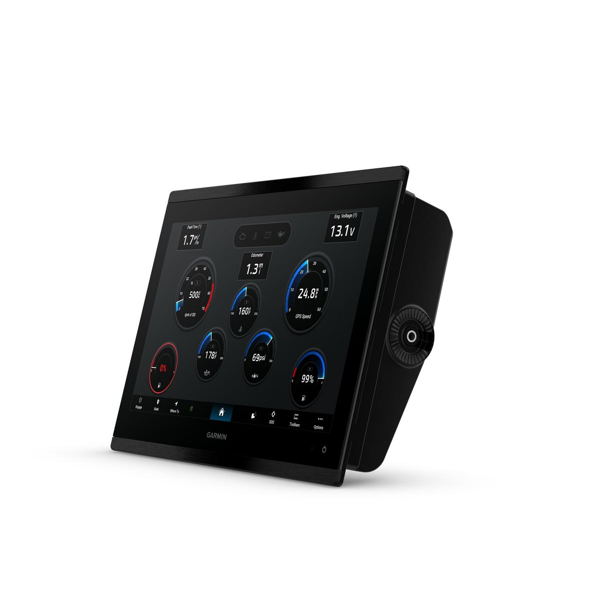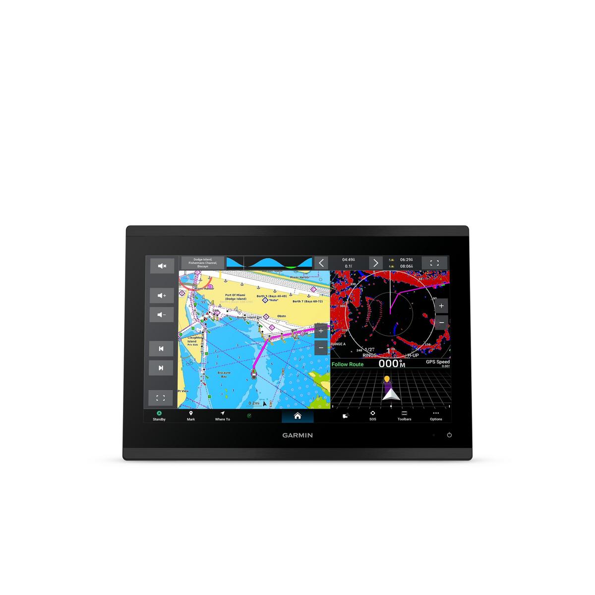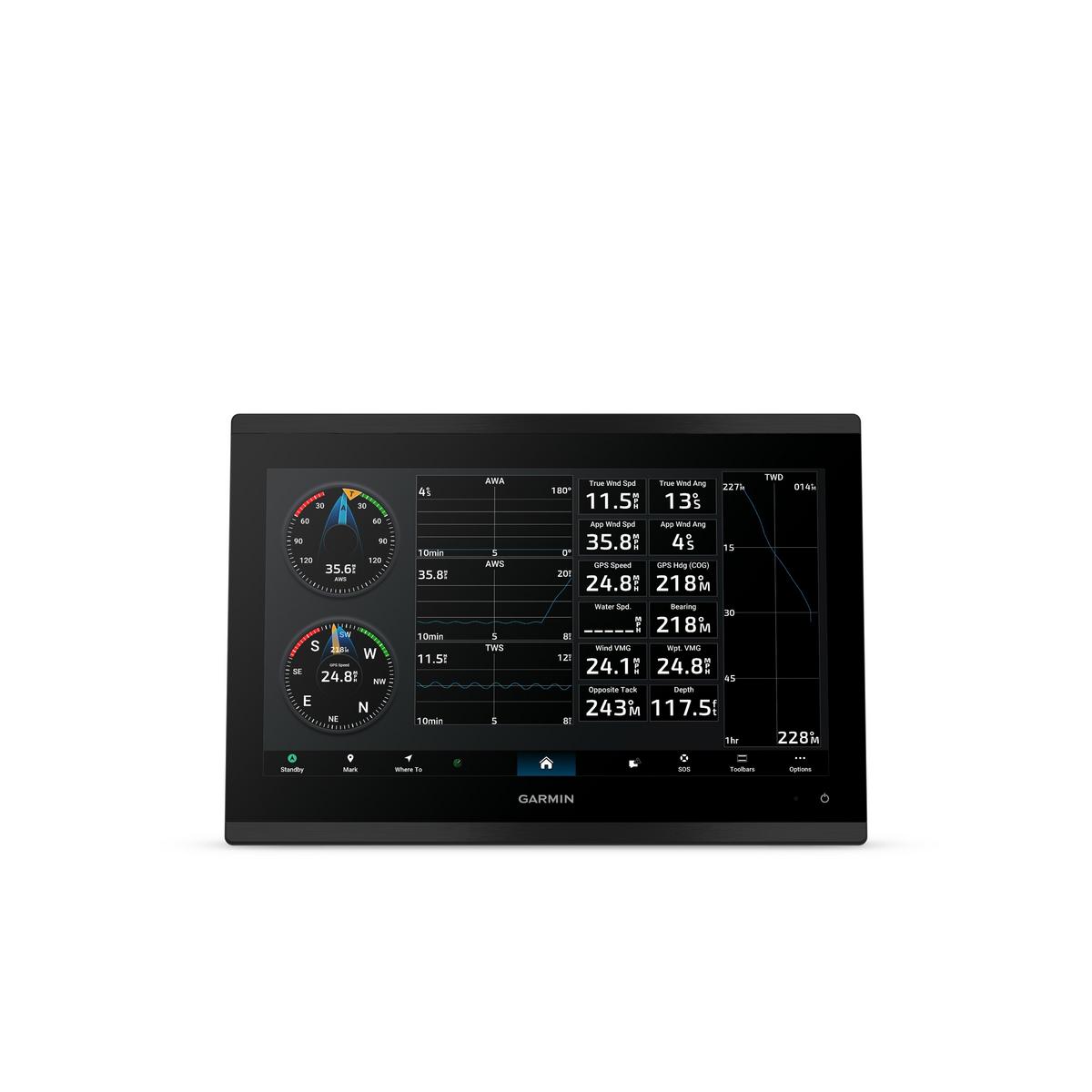 GPSMAP® 9213 is the integrated touchscreen chartplotter designed for captains who demand the best. Enjoy edge-to-edge clarity with 4K resolution on a glass helm with premium design and materials. Plot your paradise faster than ever with processing power that’s up to 7 times faster than previous generations, and get 5GHz Wi-Fi® connectivity for ActiveCaptain® app updates. Get a connected boating experience by linking your compatible MFDs, cameras, sonars and more on the gigabit-speed Garmin BlueNet™ network. The full suite of Garmin SailAssist™ features allows you to see wind speed, direction and other critical data at a glance. When your hands are full, use spoken commands to operate the chartplotter (compatible headset or smartwatch required; not included). Navigate on the water with preloaded Garmin Navionics+™ charts, or upgrade to premium Garmin Navionics Vision+™ charts. Garmin Navionics+ comes with Auto Guidance+™ technology, which helps you navigate and avoid land- and water-based obstacles based on chart data (for planning purposes only and does not replace safe navigation operations).