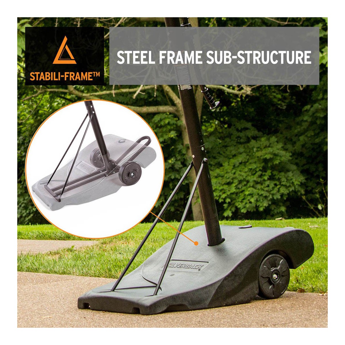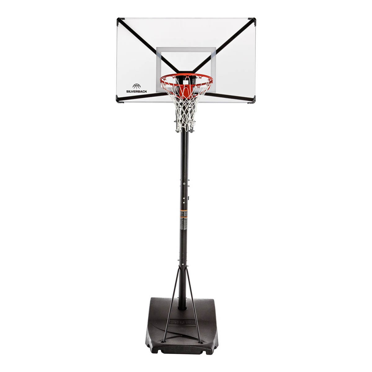 The Silverback NXT 54" Portable Basketball Hoop features innovative design and technology so everyone can have more fun shooting hoops in the backyard. The Silverback NXT 54 features the Stabili-Frame steel construction to provide added stability for increased playability, while the slanted pole design provides better weight distribution across the base for safety. For convenience, the Silverback NXT 54 has wheels for easy moving and is designed for fast assembly. The Infinity Edge backboard on the Silverback NXT 54 offers wrap around edges to the back of the backboard for a continuous, modern design, strength, and reduction of dead spots. The durable construction paired with the adjustable height between 7.5-feet and 10-feet ensure that you'll enjoy years of use from the Silverback NXT 54. Add some fun to your backyard this summer with the Silverback NXT 54" Portable Basketball Hoop.