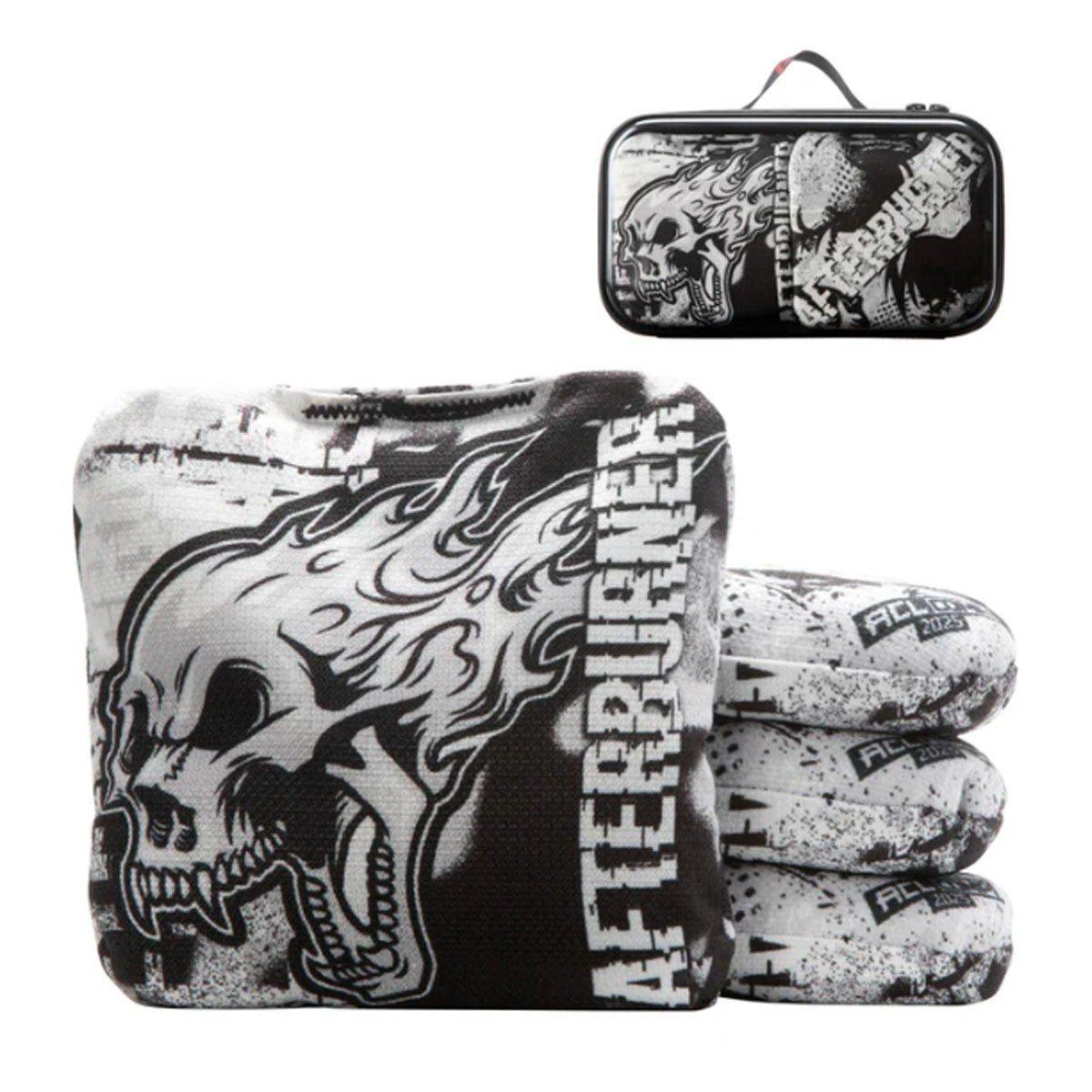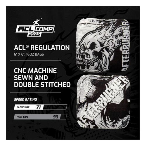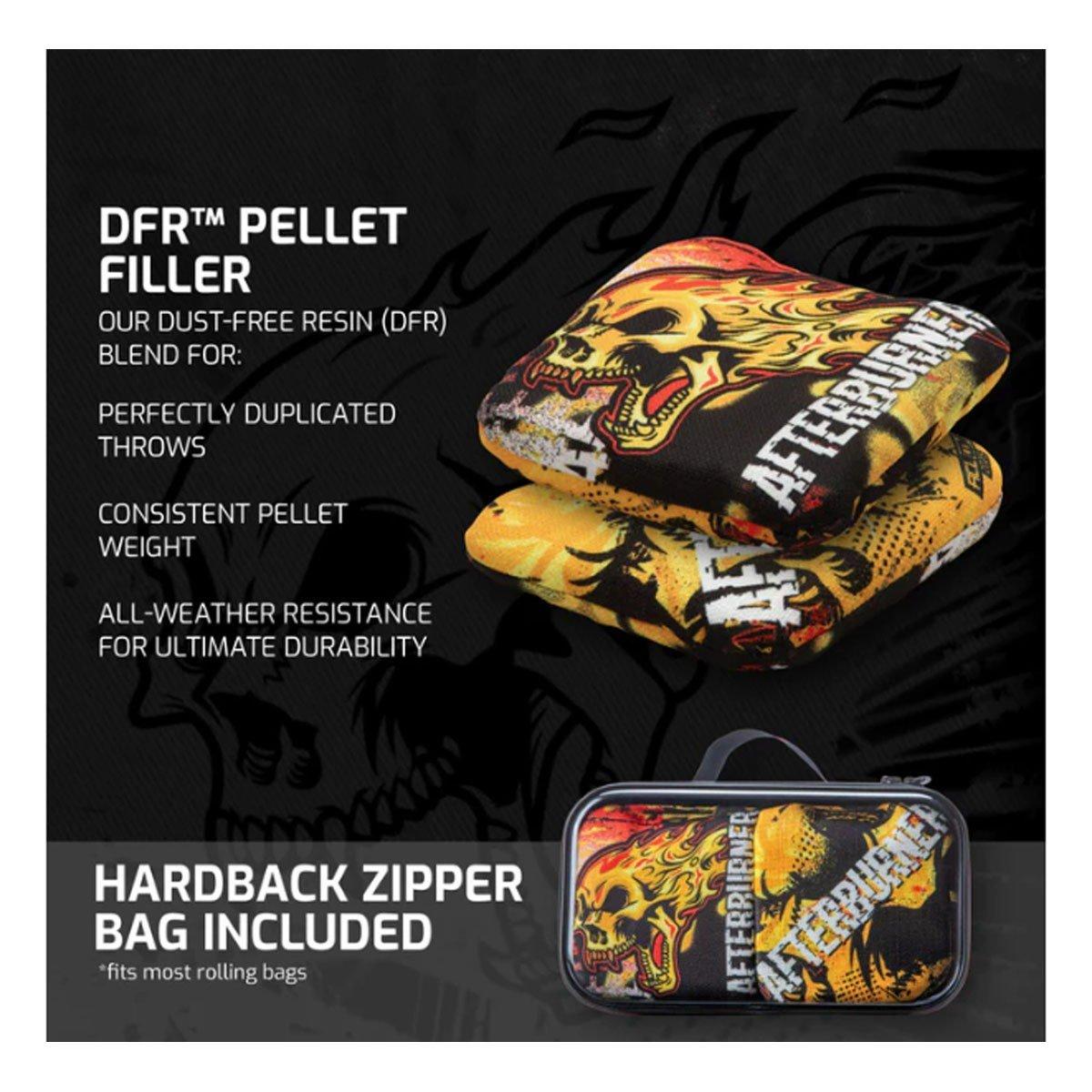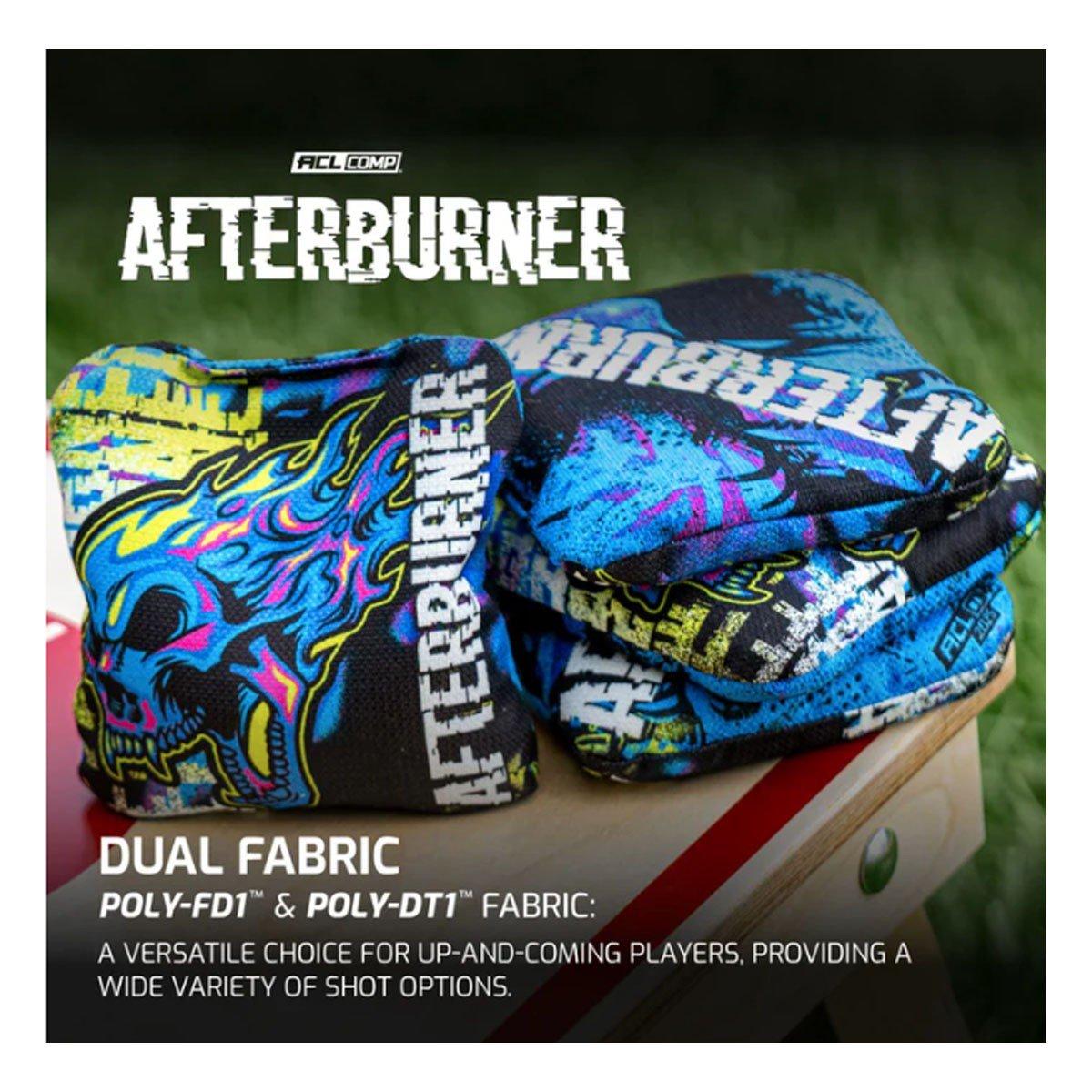 Develop your play with these American Cornhole League COMP officially licensed and certified, Afterburner bags. By combining Poly-FD1 and Poly-DT1 fabrics, the Afterburner is a versatile choice for up-and-coming players, providing a wide variety of shot options. A speed scale of 93 (fast) and 71 (slow) enables highly competitive play and a wide array of tactics. Formulated with our proprietary, Dust-Free Resin (DFR) technology, these bags boast all-weather resistance while providing consistent throws, each time. Protect your bags with our premium, plastic molded carry case; fits most cornhole travel bags. Regulation sized, 6” x 6”, 16oz. CNC machine sewn and double stitched for exacting standards and ACL® COMP certified consistency. Bags marked with the ACL® COMP stamp are not approved for broadcast events. This stamp is eligible to gain points in ACL® sanctioned events outside of the ACL® Pro Division. These bags are held to the same general guidelines as the PRO stamp bag.