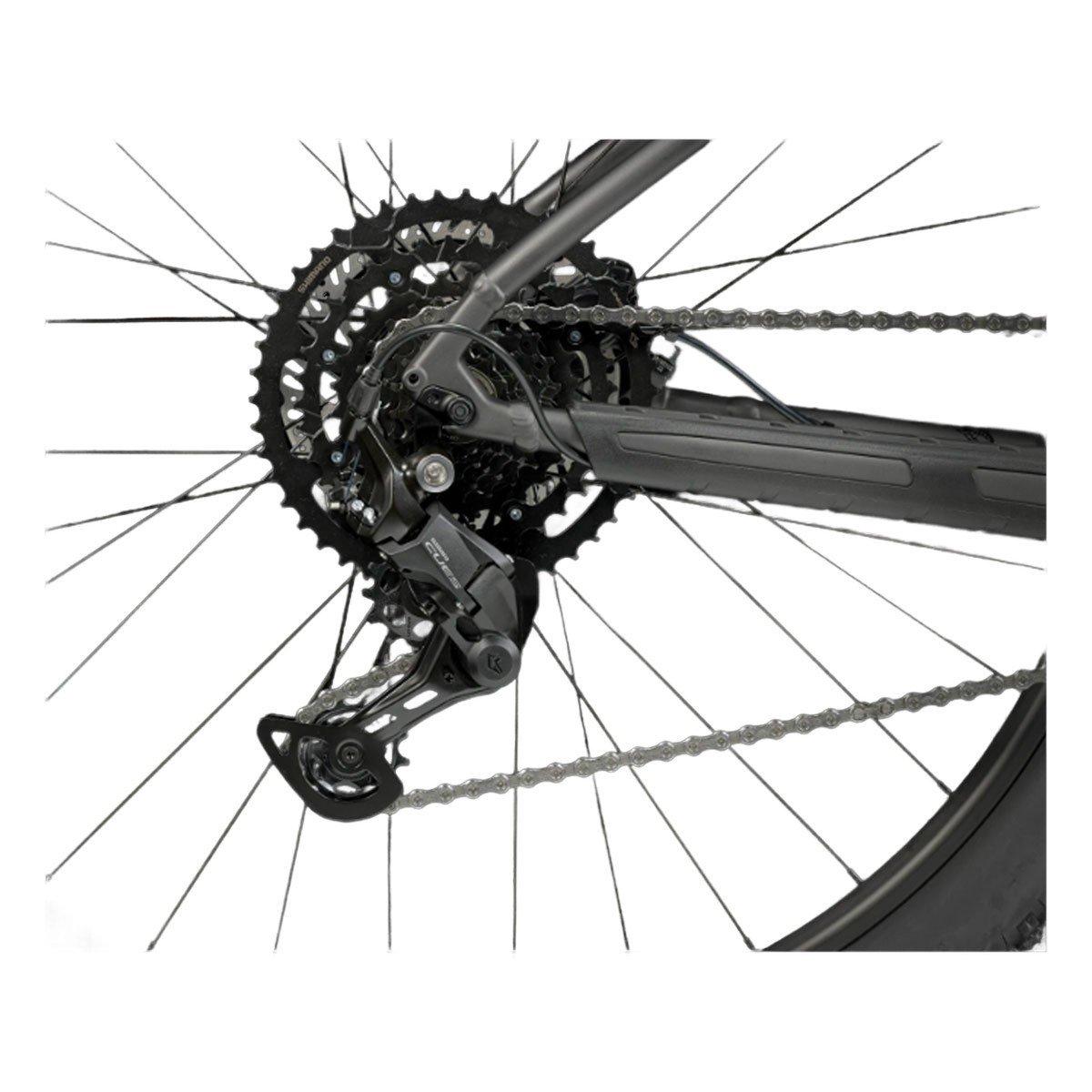 A lightweight aluminum frame with internal routing to protect your cables and add to the bike's sleek look, an upgraded 9-speed Shimano CUES drivetrain, a wide range of gearing so you always have the right gear for your terrain, powerful hydraulic disc brakes, and a terrain-smoothing suspension fork with a lockout.