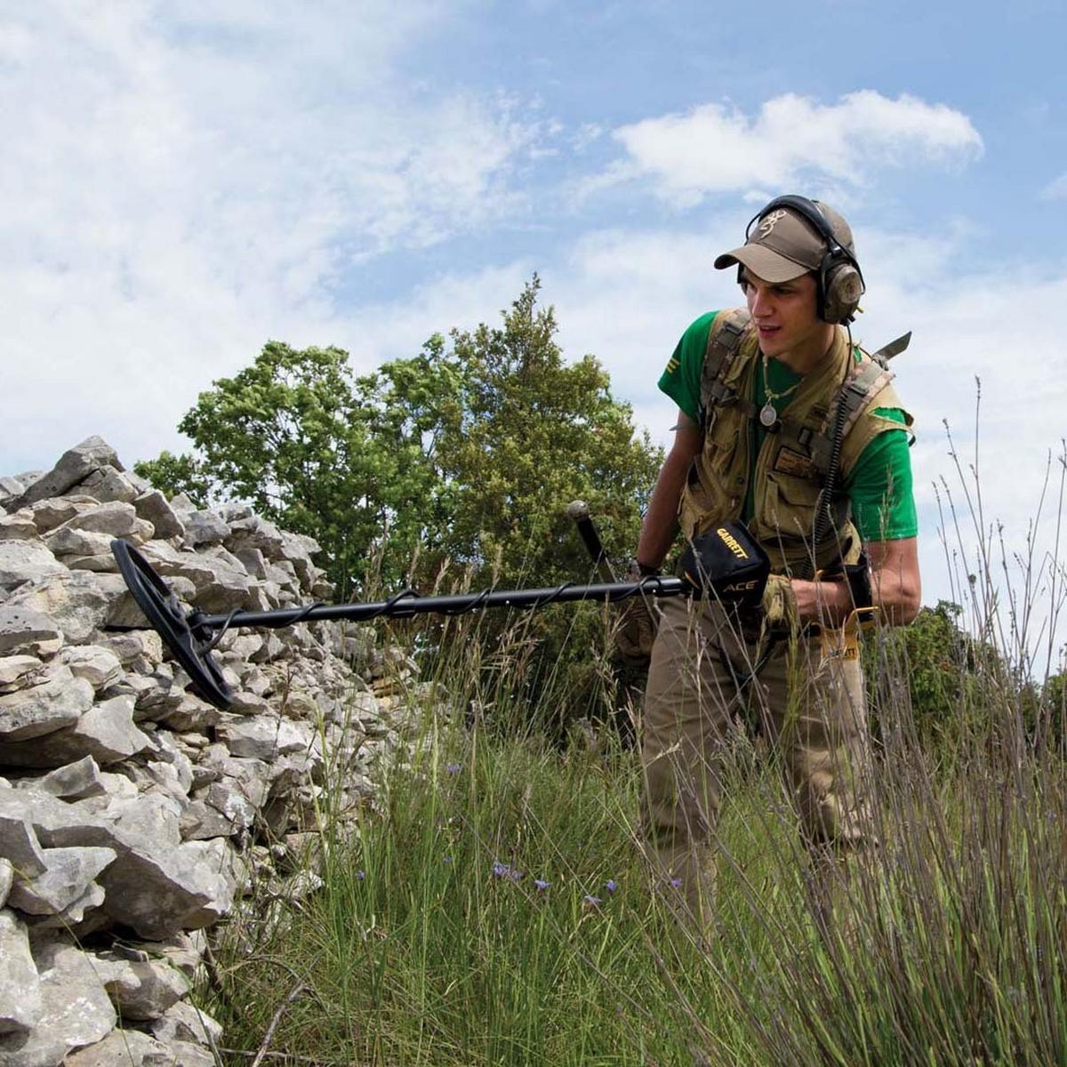 Accessories included: Garrett ClearSound Easy Stow Headphones, ACE Environmental Cover-Up, 8.5” x 11” PROformance™ DD searchcoil, searchcoil cover, & 4 AA batteries.