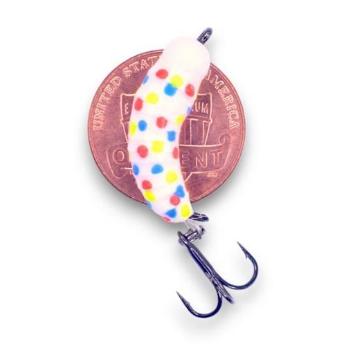 The Kenders Tungsten Mighty Maggot Jig is a great profile for crappies, perch, bluegills and trout. Made from durable tungsten material, this jig is heavy enough to quickly sink down to the desired depth and is designed to fish vertical.