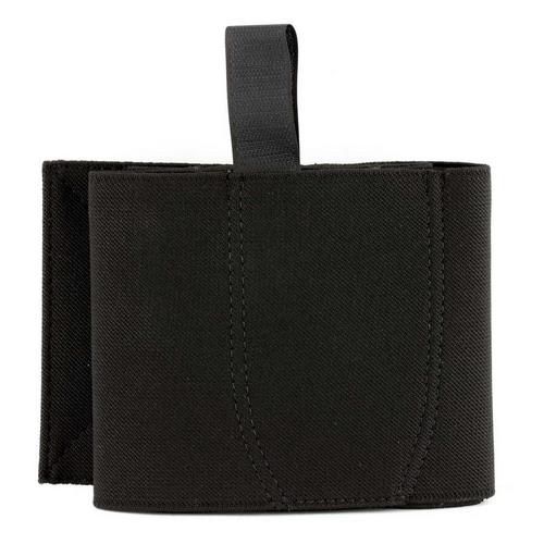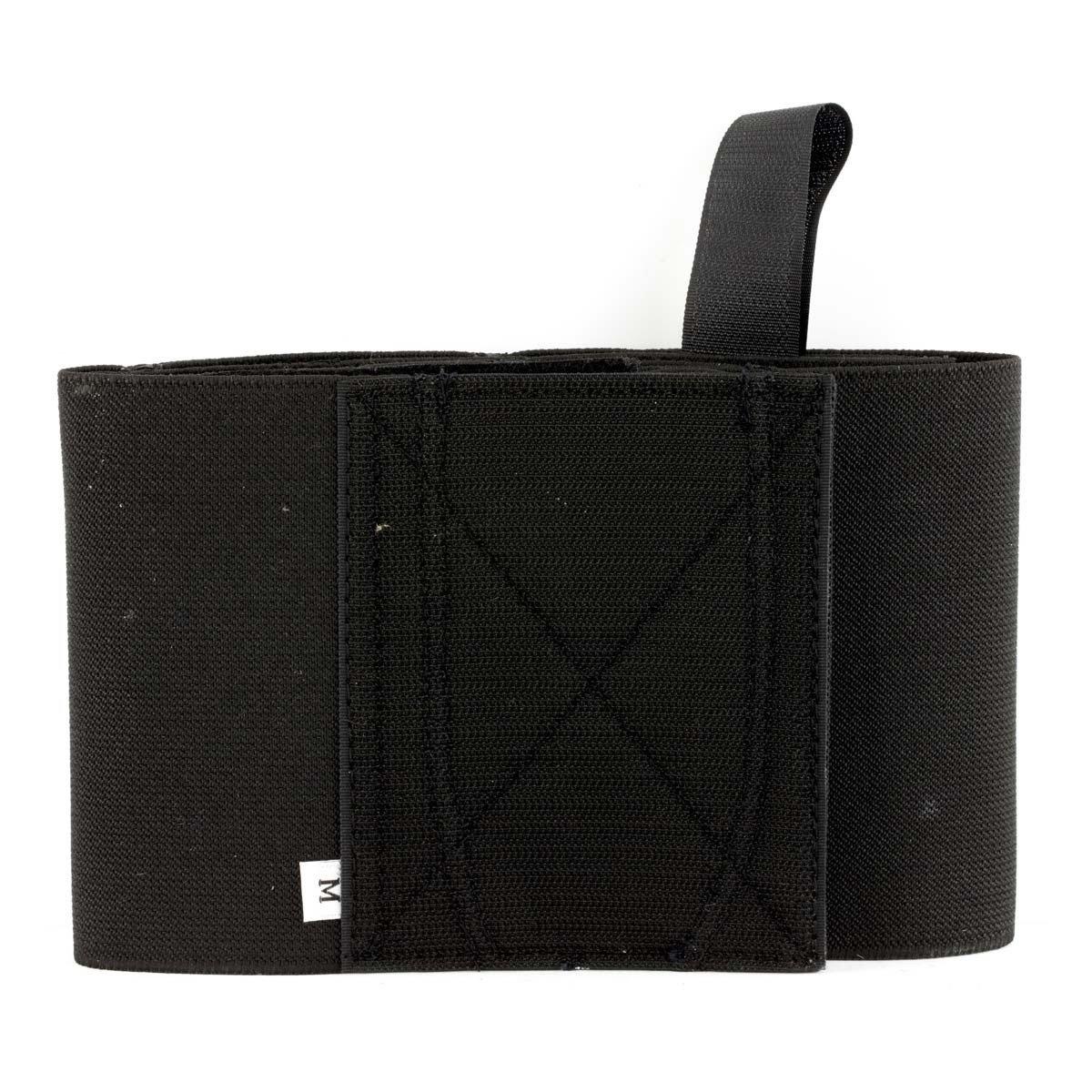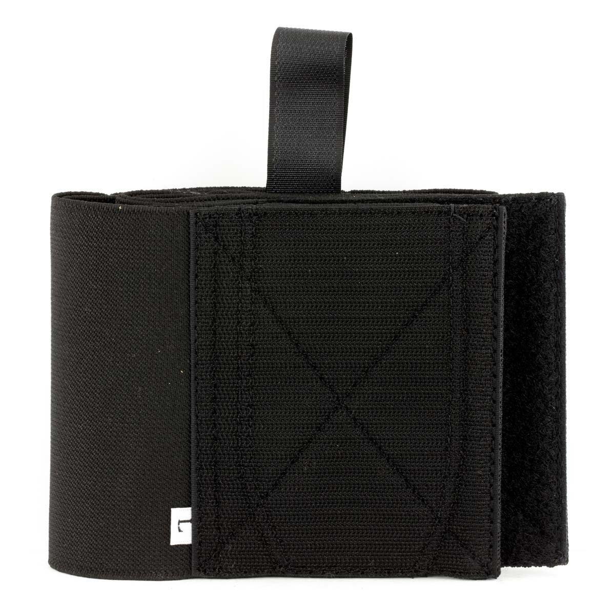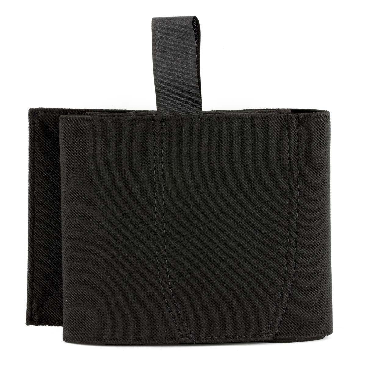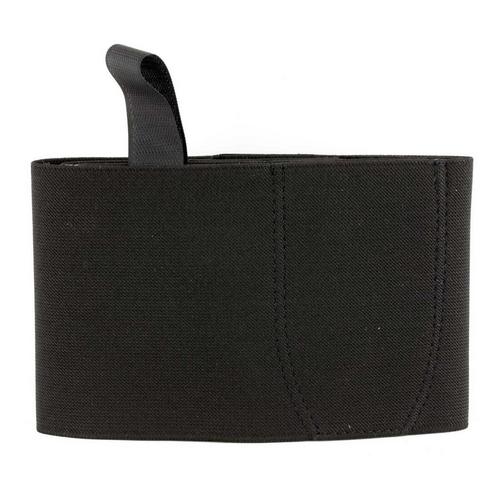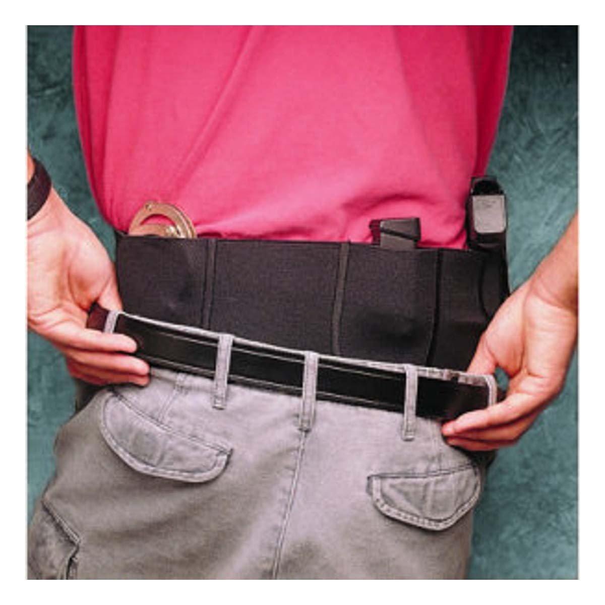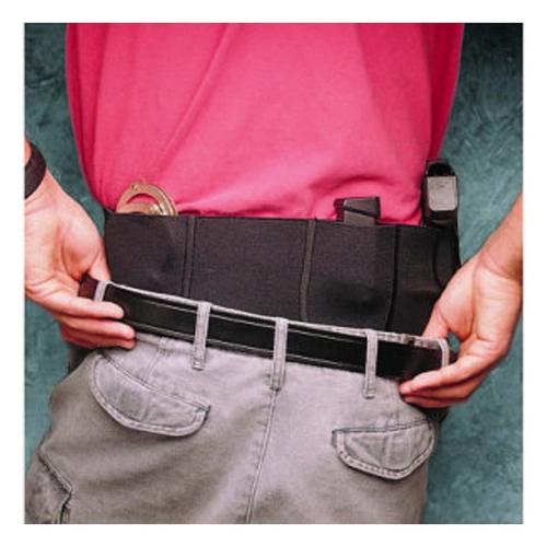 This 5" wide elastic band incorporates three pockets to conceal your essentials. Fits most small frame concealable handguns. Available in black or natural. Ambidextrous design. Available in sizes:Small (Fits waist 24-28)Medium (Fits waist 30-34)Large (Fits waist 36-42)Extra Large (Fits waist 44-50)Extra Extra Large (Fits waist 52-58)