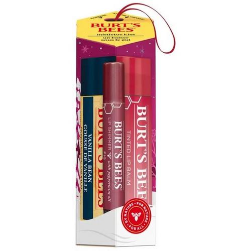 Burt's Bees® Mistletoe Kiss Holiday Gift Set moisturizes lips with a pop of luminescent color so they're always ready for under the mistletoe. This gift set includes three stunning lip products for layering over a favorite lipstick or for applying on lips for a shimmering hint of color. Fig Lip Shimmer is a dark coral hue with just the right amount of natural looking color and shimmer, Red Dahlia Tinted Lip Balm has a warm and Vanilla Bean Lip Balm is a tint free matte finish infused with fruit extracts. These everyday shades are enriched with Shea Butter, Vitamin E and fruit oils to moisturize and naturally soften lips. The 100% natural origin lip tint has a smooth texture that glides on with a hint of mint to invigorate lips with a refreshing tingle. Brighten lips with a spot of color and complement natural beauty with this kissable trio. This gift set is beautifully packaged in a Burt's Bees® signature holiday gift box ready for holiday gifting.
