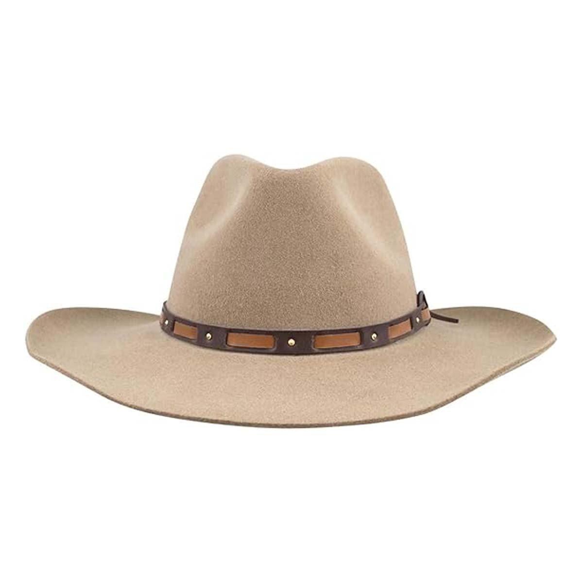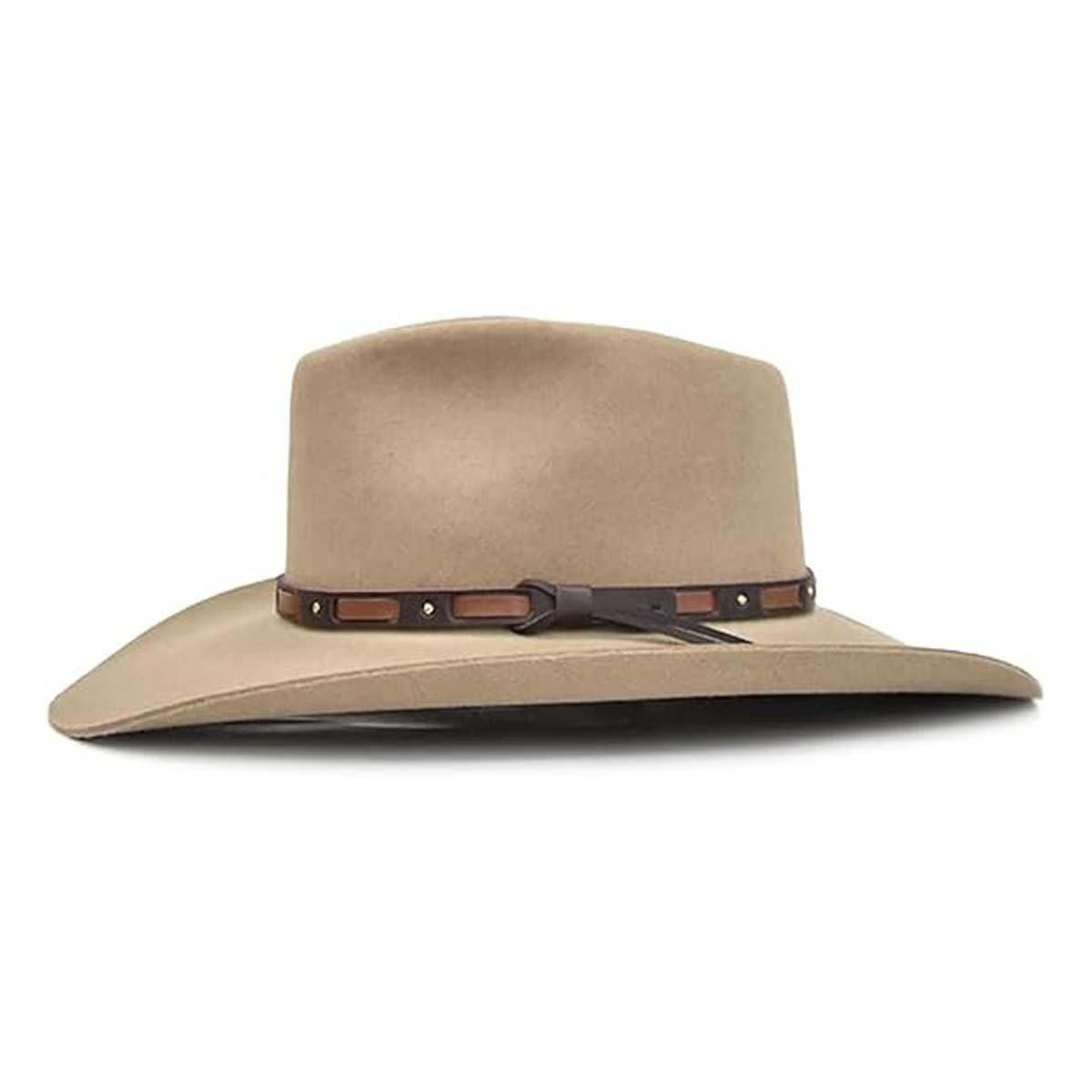 The Stetson Men's Hutchins 3X Wool Felt Cowboy Hat is a refined piece crafted from high-quality 3X wool felt, providing a structured, durable hat that's perfect for daily wear or special occasions. Its wide brim offers excellent sun protection, while the cattleman crown lends a classic Western style. The hat also features a stylish decorative hatband that adds sophistication to its rugged look. Ideal for cowboys or anyone seeking a premium, timeless hat, the Hutchins blends comfort, style, and practicality. Shop this and other Stetson hats at SCHEELS for unmatched quality and craftsmanship.