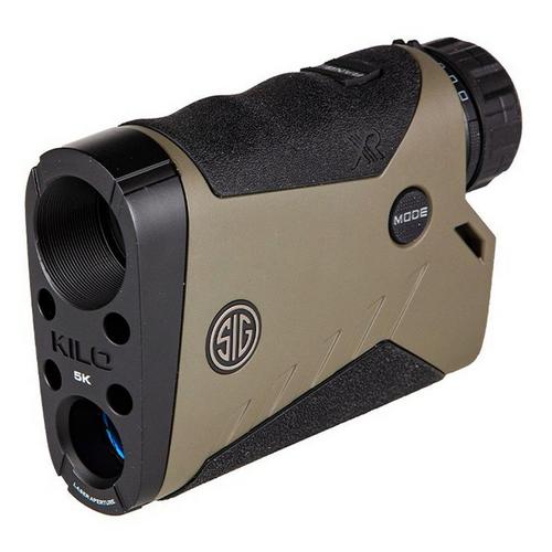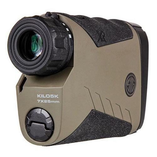 The KILO5K 7x25mm laser rangefinder monocular has a maximum reflective range of 5,000 yards and includes Applied Ballistics Ultralite onboard along with environmental sensors and supports BDX External (BDX-X) for connecting to external devices such as Kestrel and Garmin devices. The Gen II LightWave DSP engine features new target modes: Extended Range (XR) and Fog mode along with First, Best and Last target; the OLED display provides range to target, elevation holdover and wind holds; connect with the BaseMap app to provide remote waypoints on ranged targets and can be fully configured with the SIG SAUER BDX App. Includes a black/grey carry pouch and lanyard.