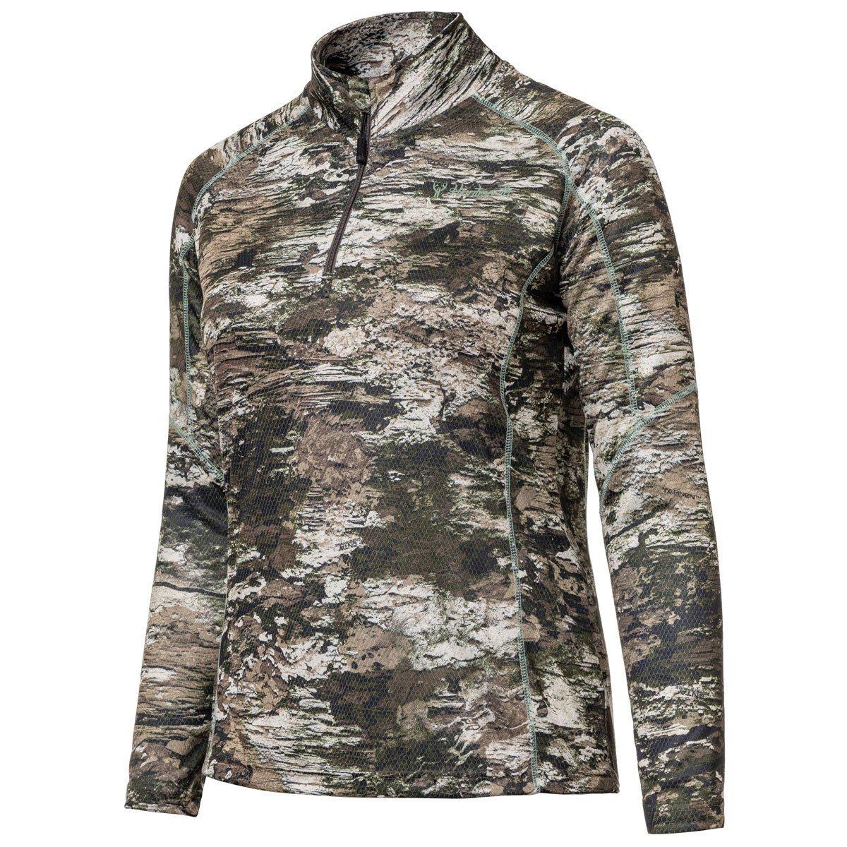 Our Gadsden Tarnen® camo pique knit pullover is a light layer that works for all seasons. In the early season, use it by itself. Then as the temps drop, layer it up with a vest, jacket, or heavier coat. Hidden thumb straps make it easy. Light weight and breathable, the shell is treated for scent reduction so you stay hidden. The high stand collar with chin guard blocks the chill, and flat seam construction keep you comfortable. With a quarter zipper, it’s easy to take it off or put it on as the temperatures dictate. Versatile and protective, this pullover is a great addition to any hunting kit.