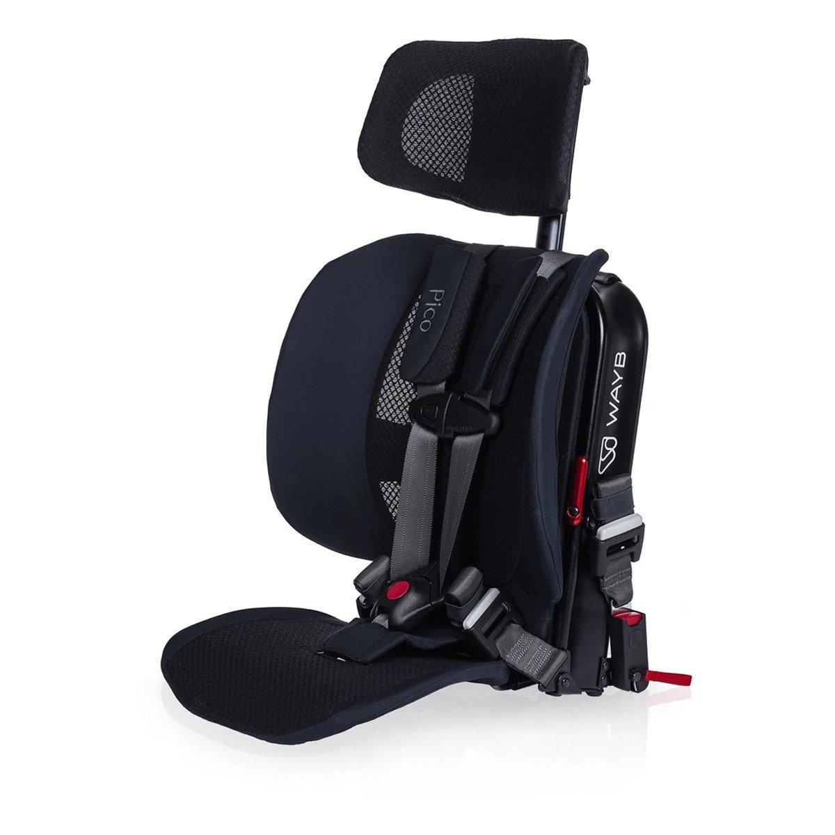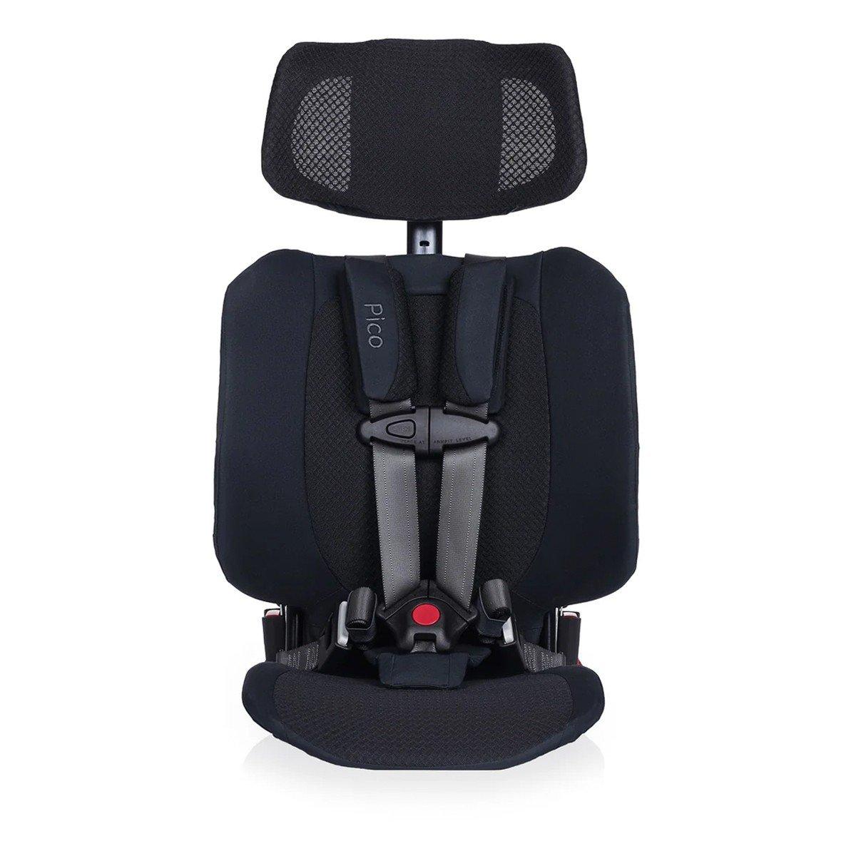 Meet Pico, the car seat that's actually portable! Forward-facing car seat fits kids 22-50 lbs and 30-45 inches Recommended for ages 2+ Pico passes all U.S. safety standards for motor vehicles and planes