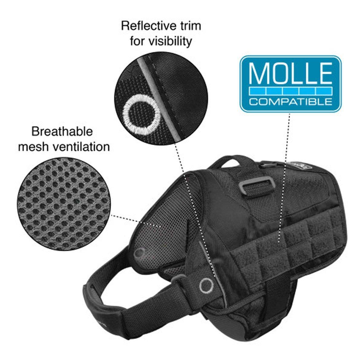 The RSG Townie Harness’s simple design, easy on and off design, plus the ability to carry a load makes this the perfect harness for your dog. Used widely in Europe by K9 athletes, service, working and security dogs, Kurgo's RSG Townie Harness’s lightweight, single buckle, design is made for comfort and ease of use. The harness features a top control handle for times when your dog needs a little extra assistance on the trail. The MOLLE-Compatible design allows you to attach any number of add-ons such as the RSG Hydration Flask, 1st Aid Kit, YORM Bag or Pack Pannier.
