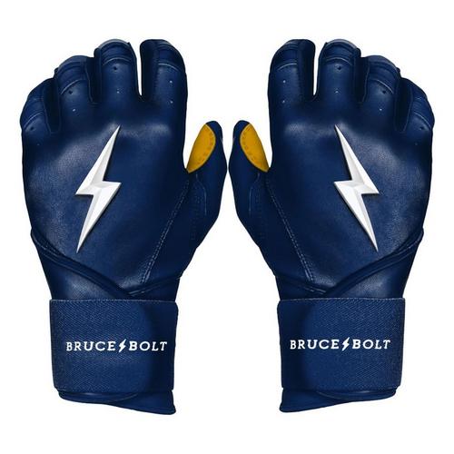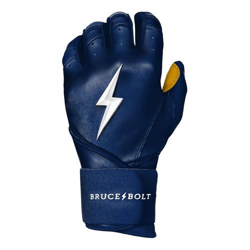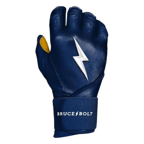 The Men's Bruce Bolt Long Cuff Batting Gloves are premium batting gloves designed to keep players comfortable and protected throughout the season. Made from 100% Cabretta leather, these Bruce Bolt batting gloves are buttery soft for an incredible feel, while the stitching techniques ensure maximum durability. In fact, Bruce Bolt batting gloves are handmade for premium craftsmanship. With the long-cuff design, these Bruce Bolt batting gloves offer more wrist stability on the back of the hand, while the heavy-duty elastic wraps provide support and power throughout your swing. Be ready when you step up to the plate this year with the Men's Bruce Bolt Long Cuff Batting Gloves.