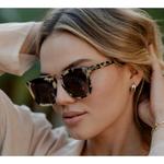 Demi is the definition of eye-catching thanks to an oversized square shape and gold metal floating double bridge design. Its lightweight acetate frame and polarized, 100% UV protection lenses provide practicality to these elevated glam shades.